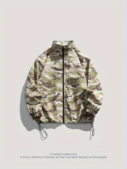 This Military Style Men's Camo Jacket is designed with comfort and durability in mind. Its khaki and green colorway adds a subtle touch of style. Perfect for any outdoor or casual setting, this jacket is made to withstand the elements while offering a classic military look.