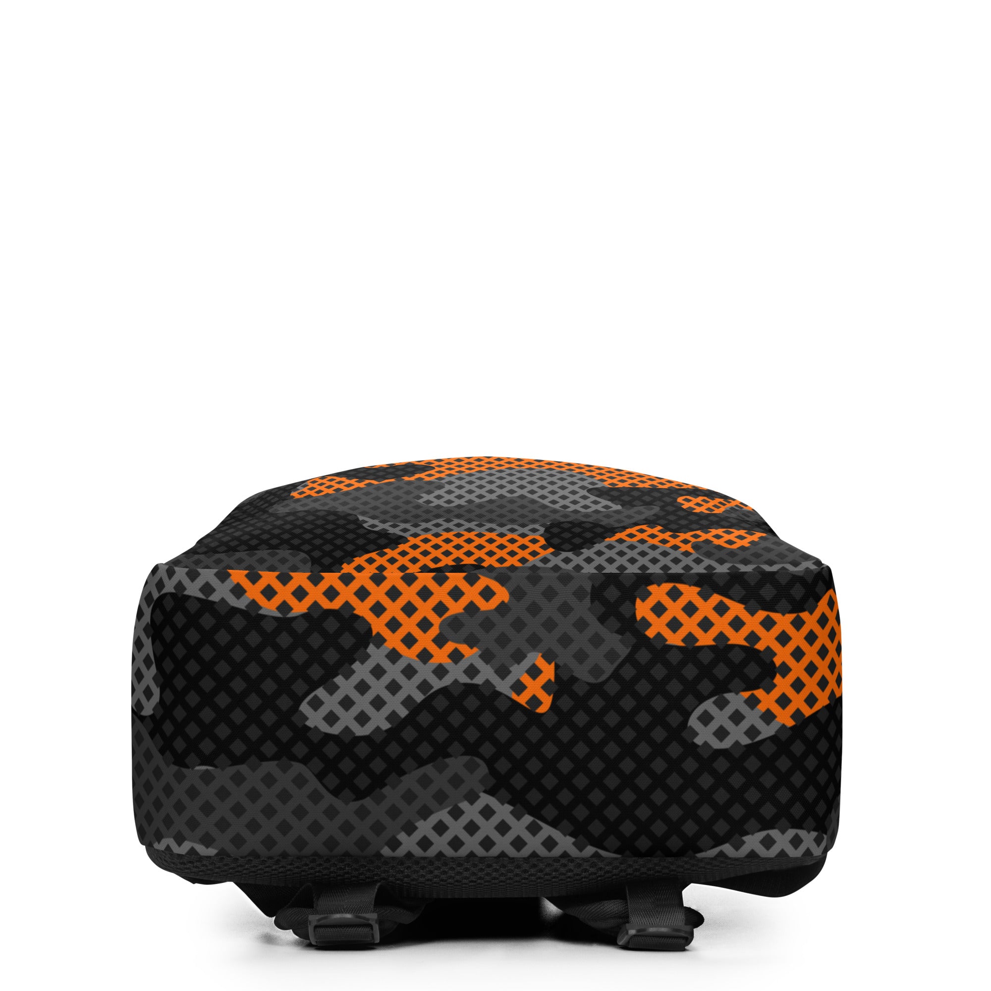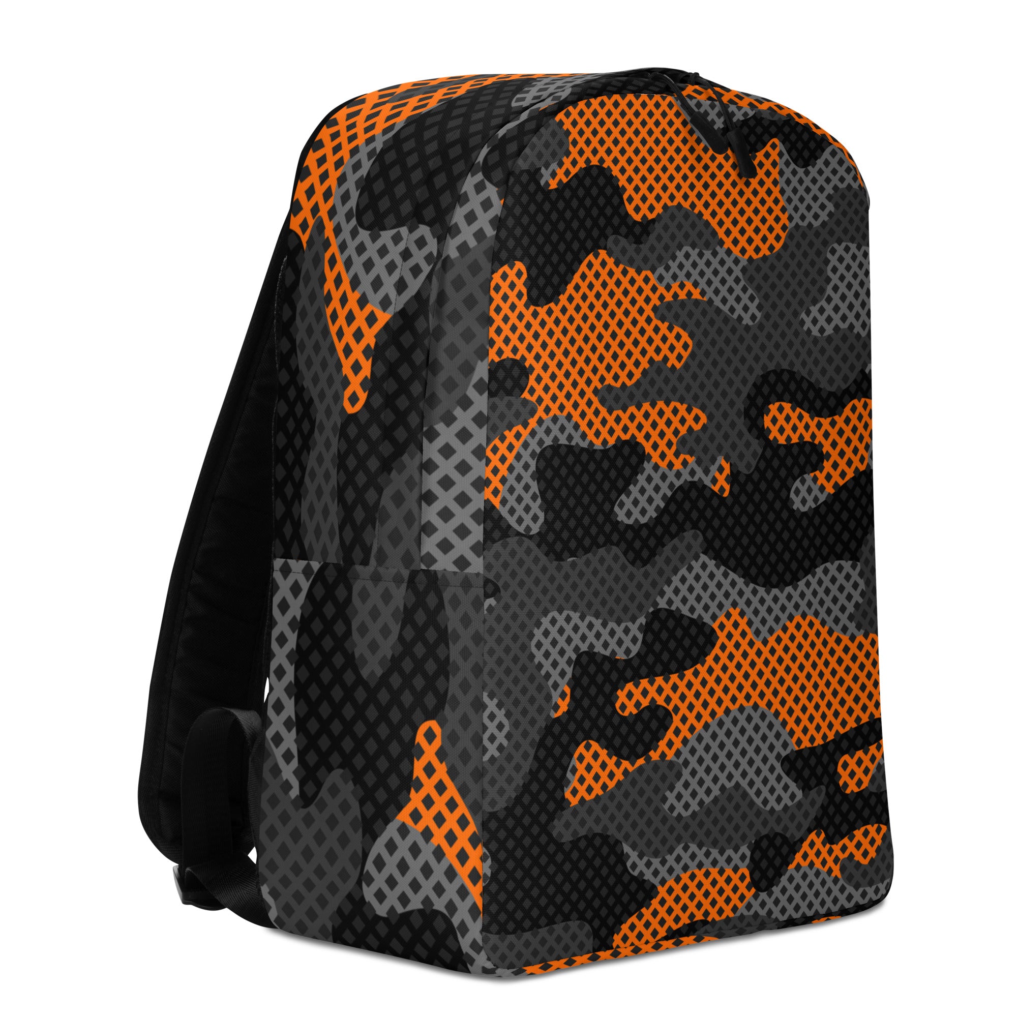 The black and orange pixel camouflage design of this minimalist backpack makes it a stylish and functional choice for any adventure. With a sleek and lightweight design, this backpack offers maximum comfort and durability. The perfect choice for those who value both fashion and practicality.