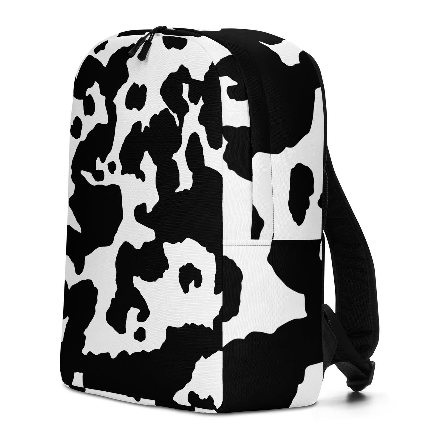 This minimalist backpack is both stylish and functional. Featuring a sleek black and white cow print design, it is perfect for any occasion. Its simple design allows for easy organization and storage, making it an ideal choice for daily use or travel. Upgrade your accessory game with this versatile backpack.
