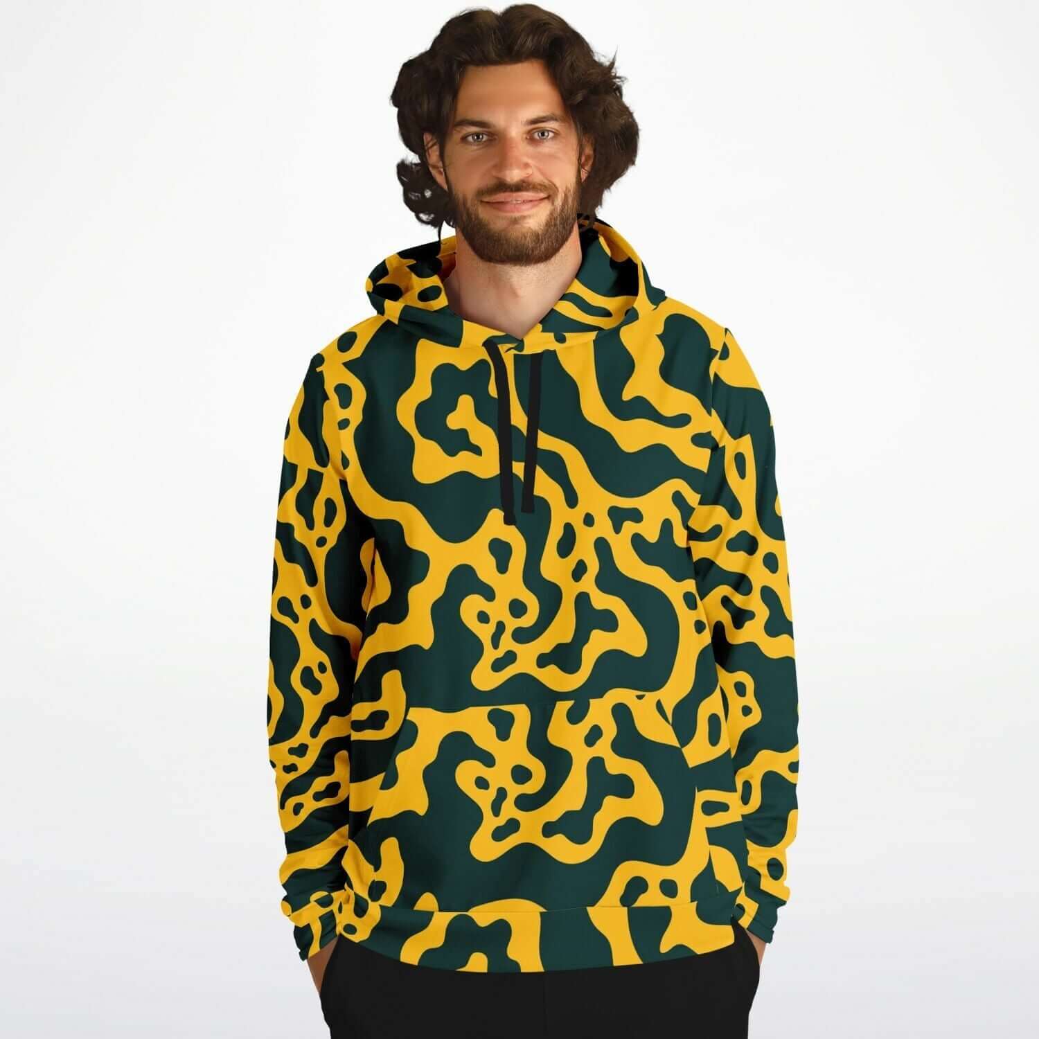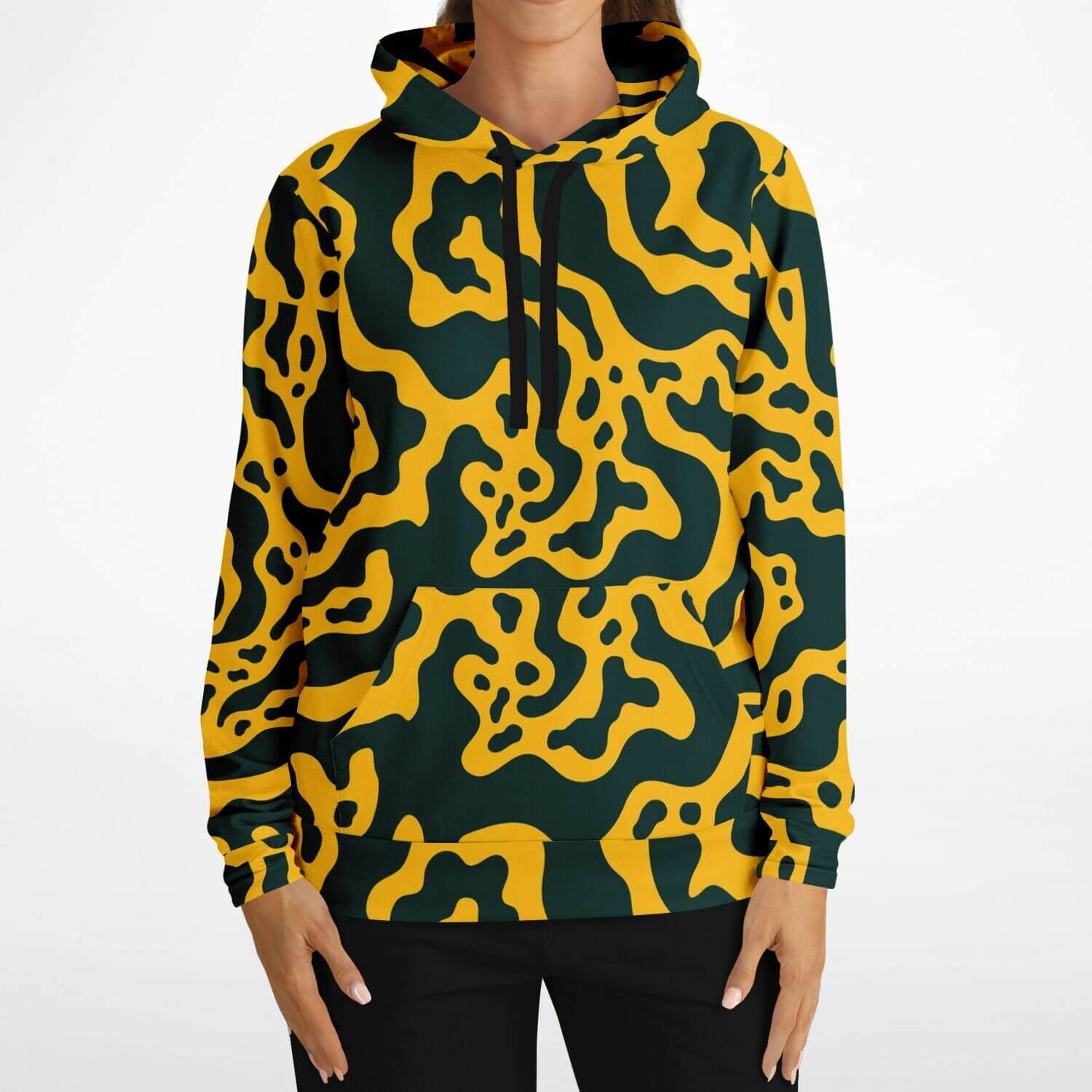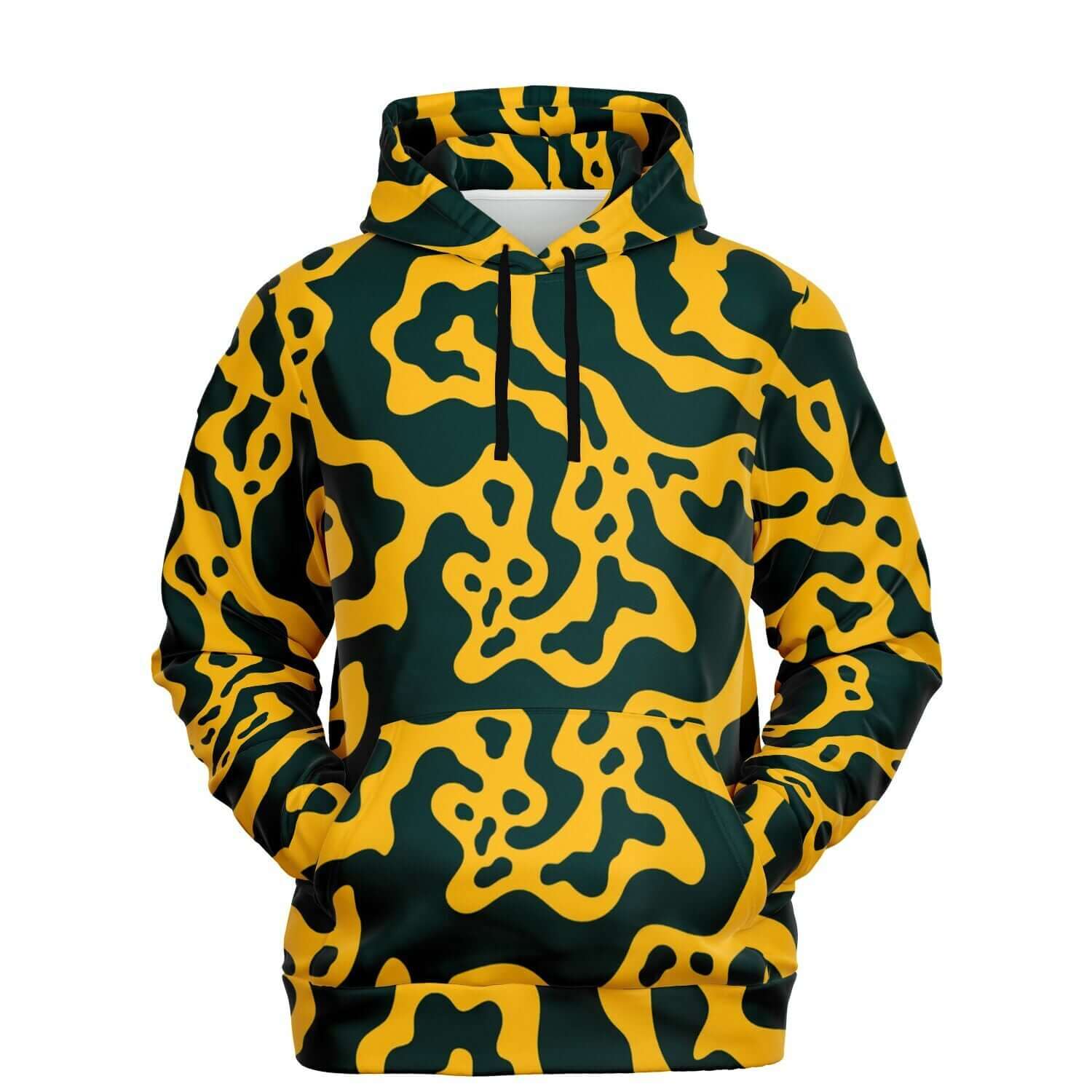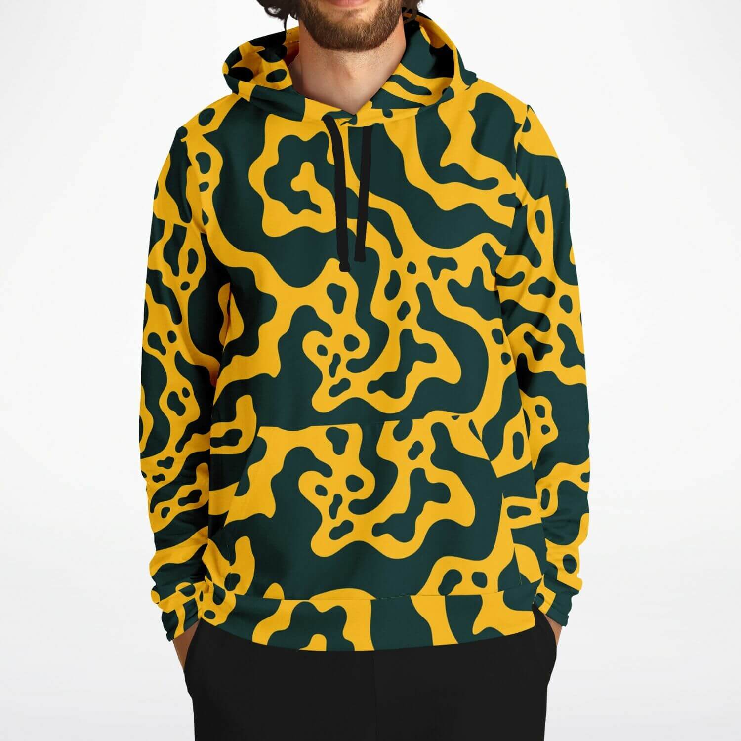 Stay warm and stylish with our Modern Camouflage Hoodie in Black and Yellow. This hoodie features a contemporary camouflage pattern, perfect for adding some edge to your wardrobe. Made with quality materials, this hoodie provides both comfort and durability for everyday wear. Upgrade your look now.
