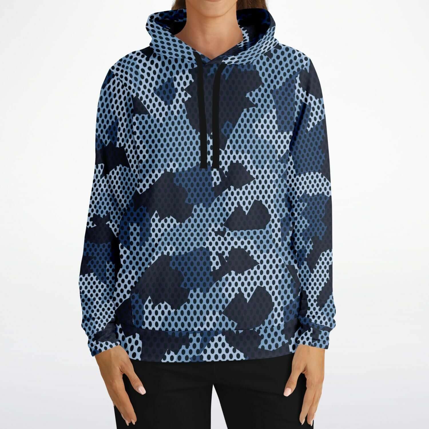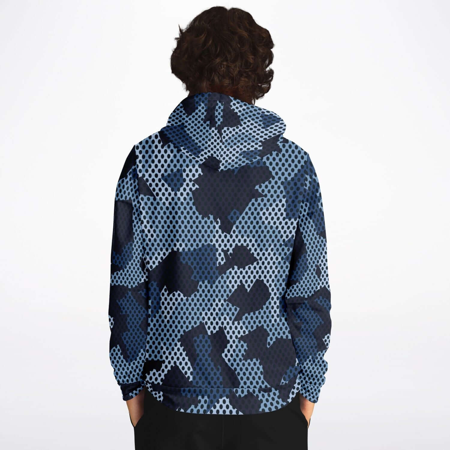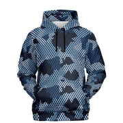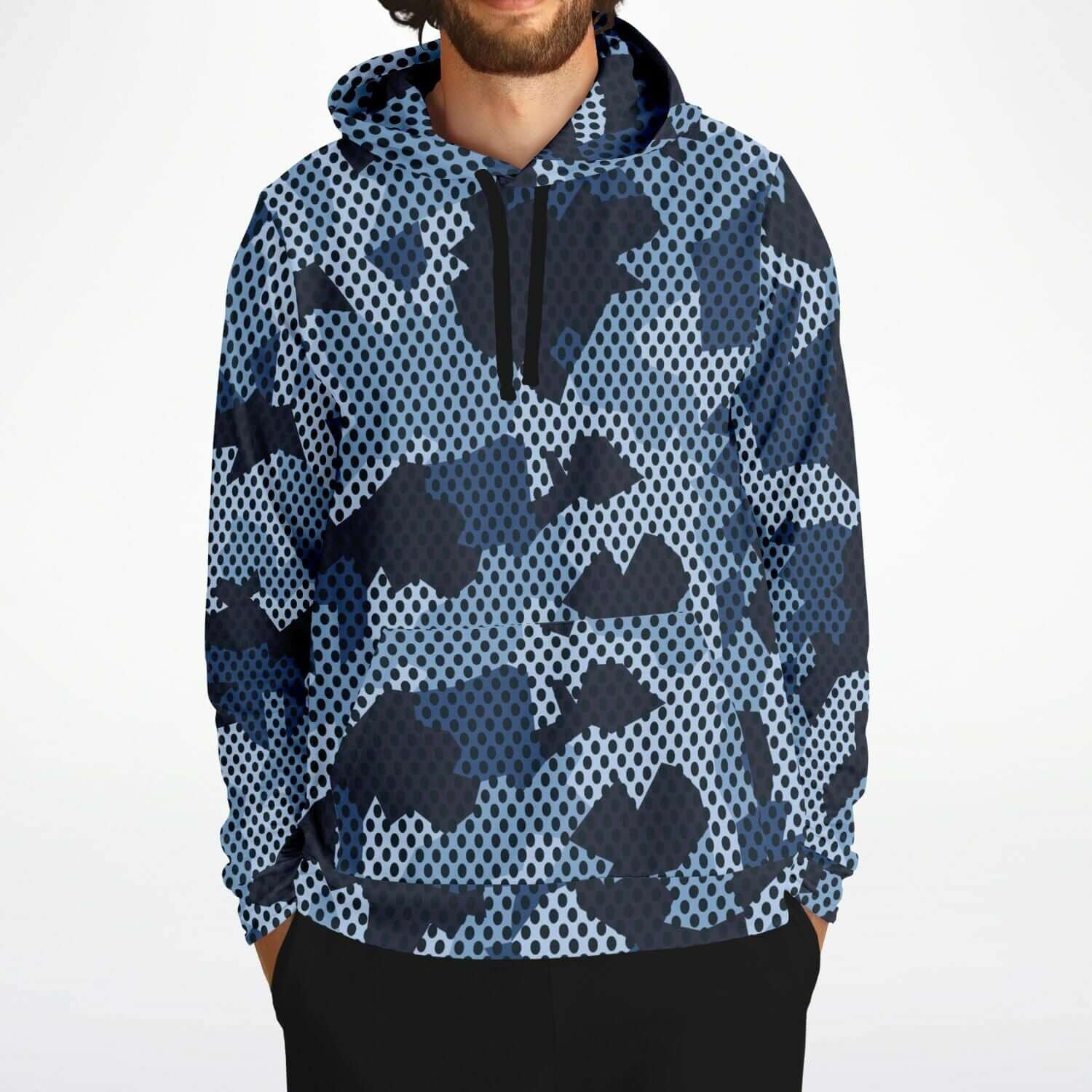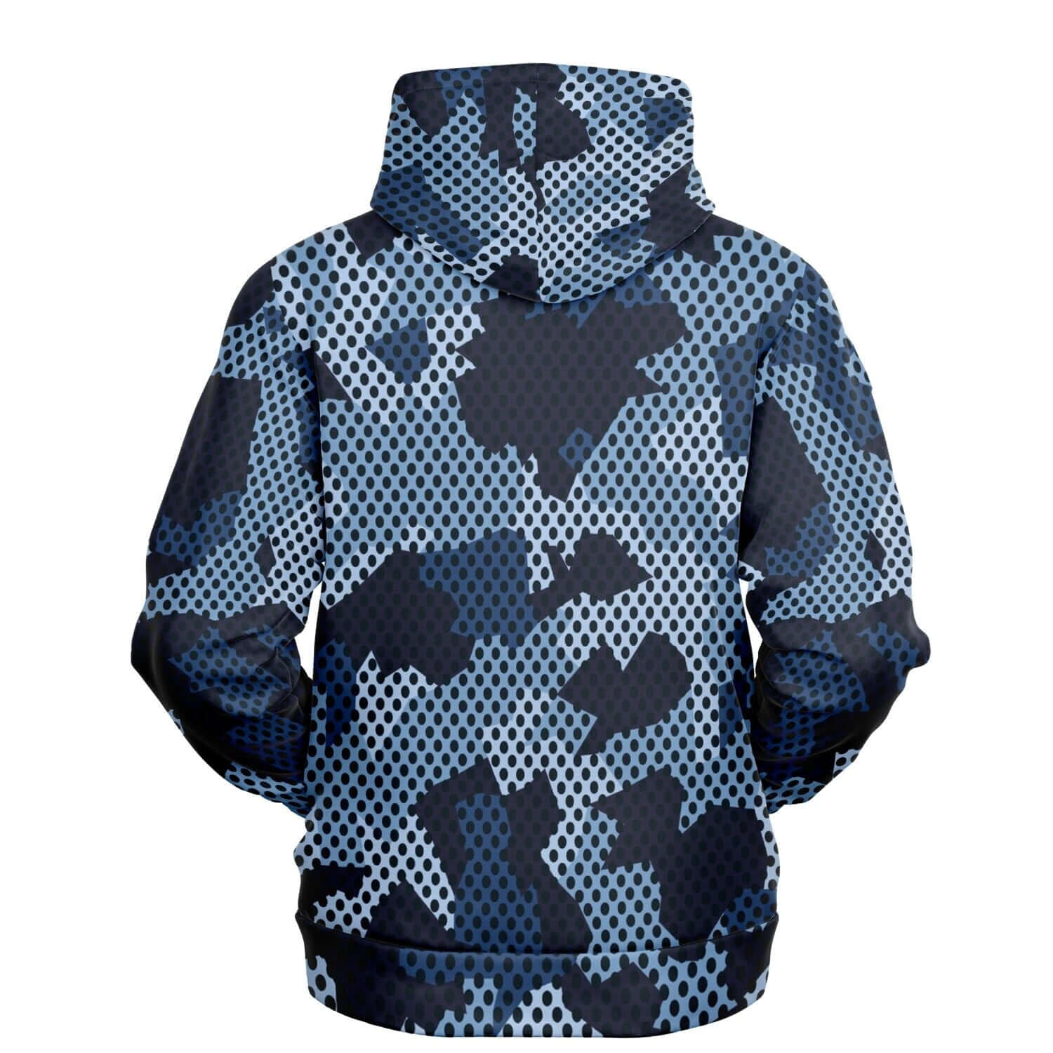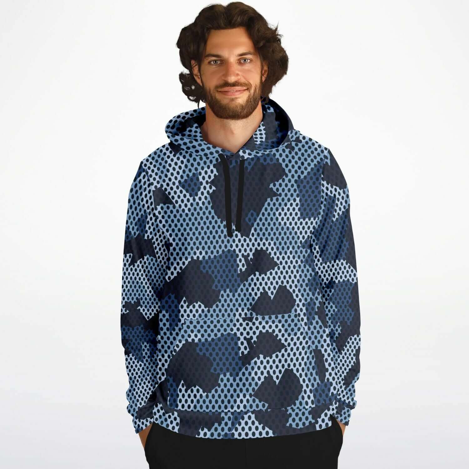Step up your hoodie game with our Navy Blue Geometric Camo Hoodie. Made with a unique geometric camo design, this hoodie offers a stylish twist to the classic camo print. Stay warm and comfortable while looking on-trend. Perfect for any outdoor adventure.
