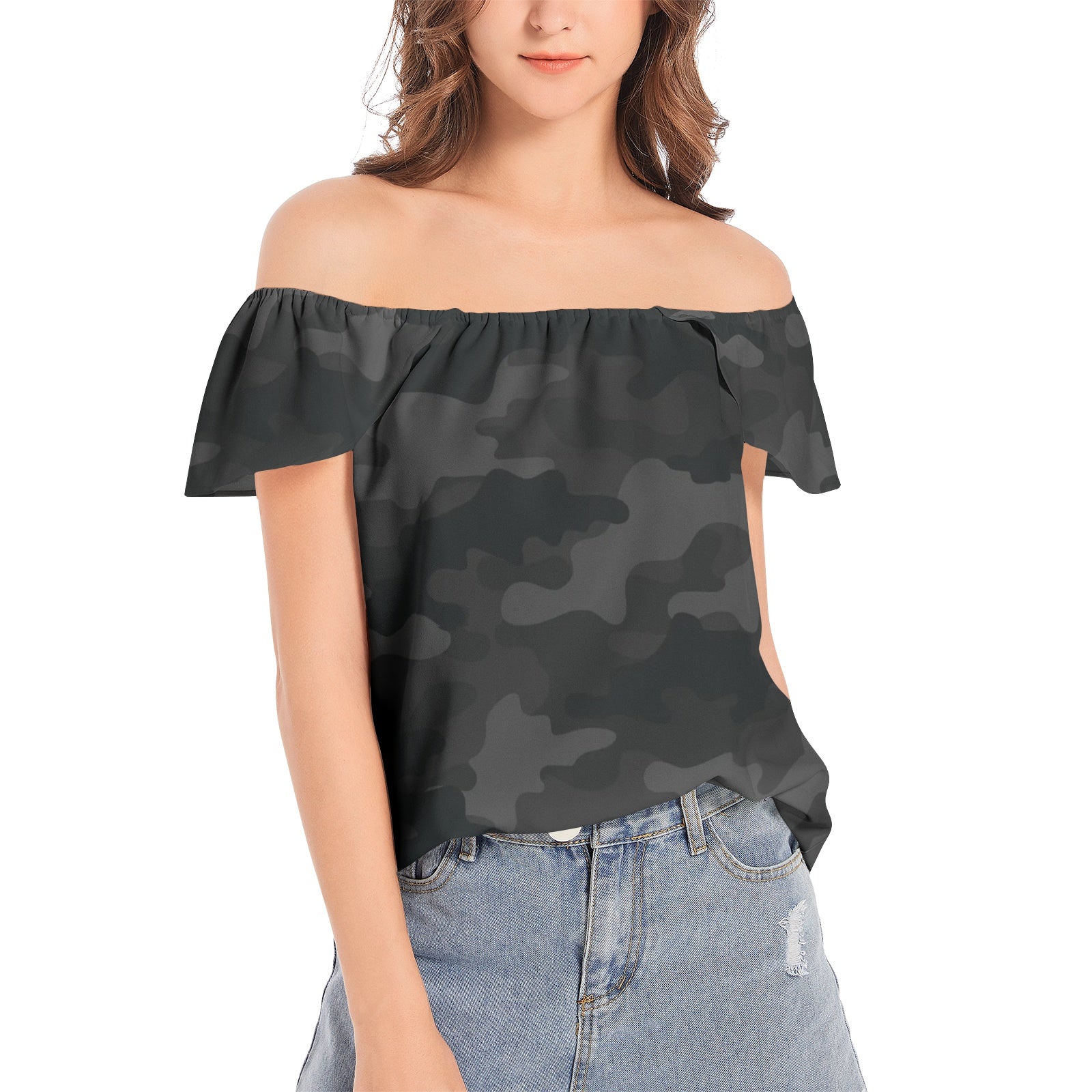 This Off The Shoulder Camo Top in Black Camouflage offers a stylish and unique look. The off the shoulder design adds a touch of femininity, while the camouflage pattern adds a rugged and edgy element. Perfect for making a statement and standing out from the crowd.