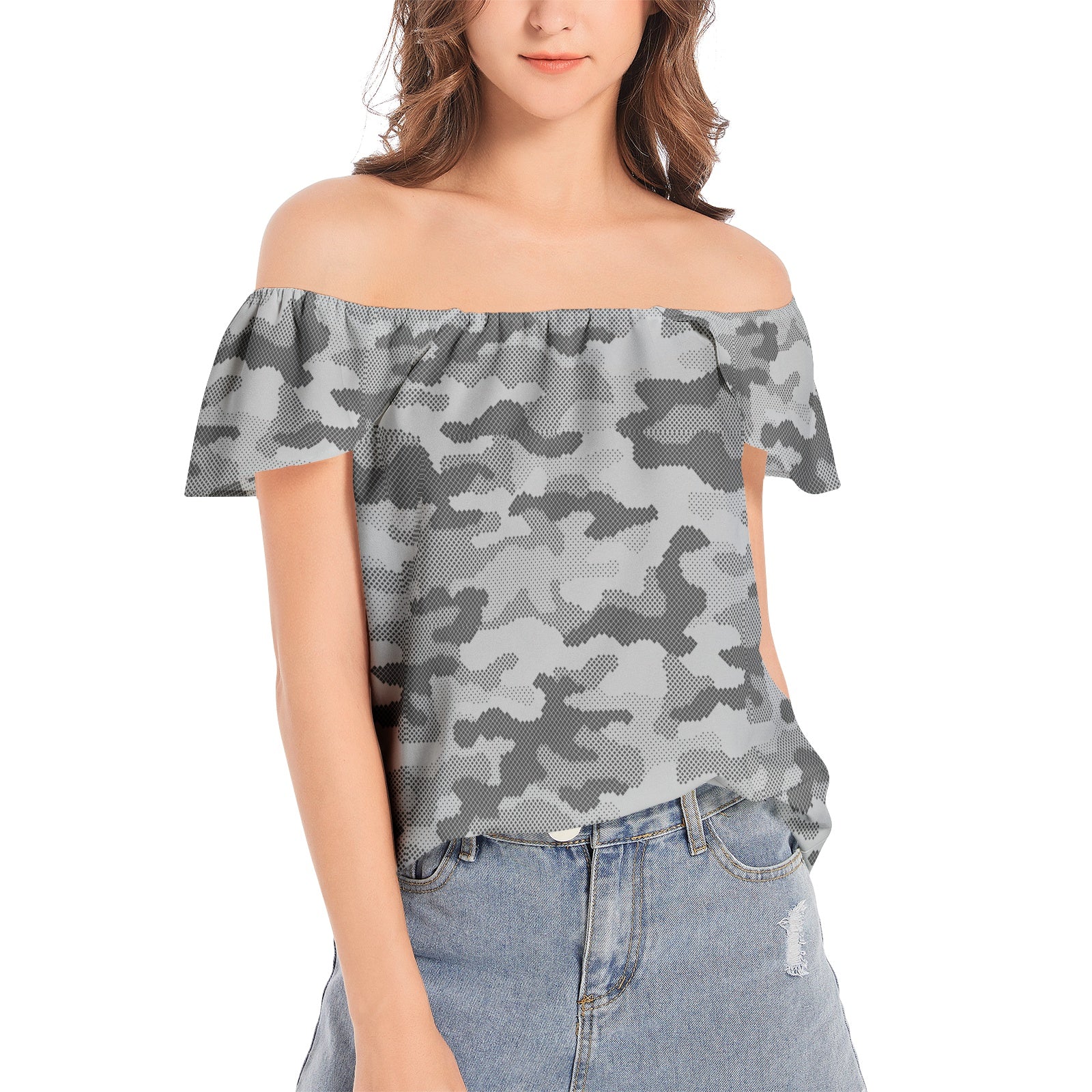 Off The Shoulder Camo Top | Digital Gray Camouflage