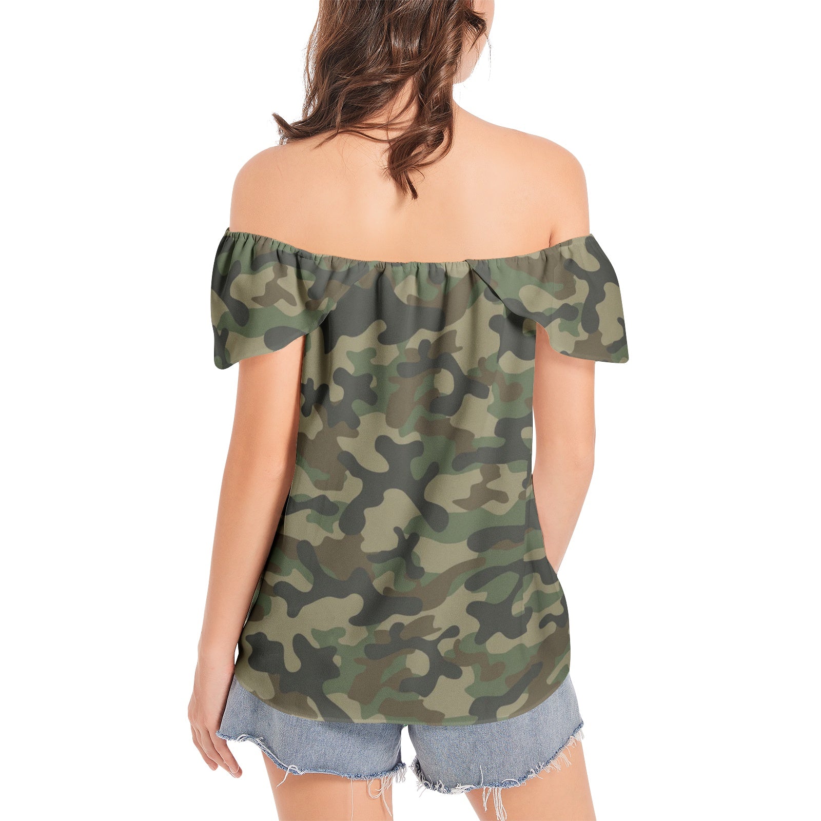 Off The Shoulder Camo Top | Military Brown Camouflage