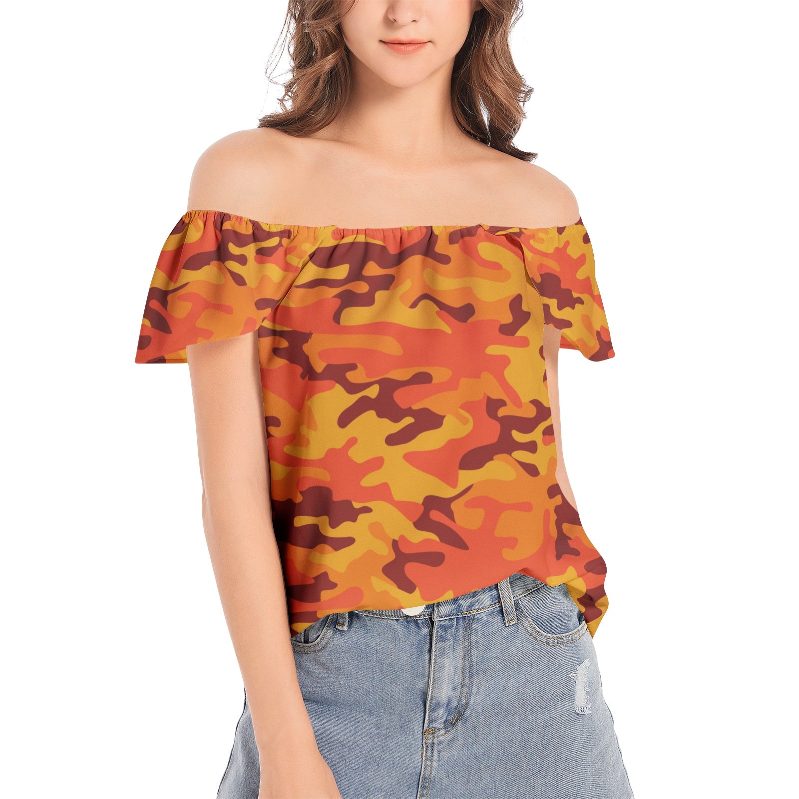 Off The Shoulder Camo Top | Red and Orange Camouflage