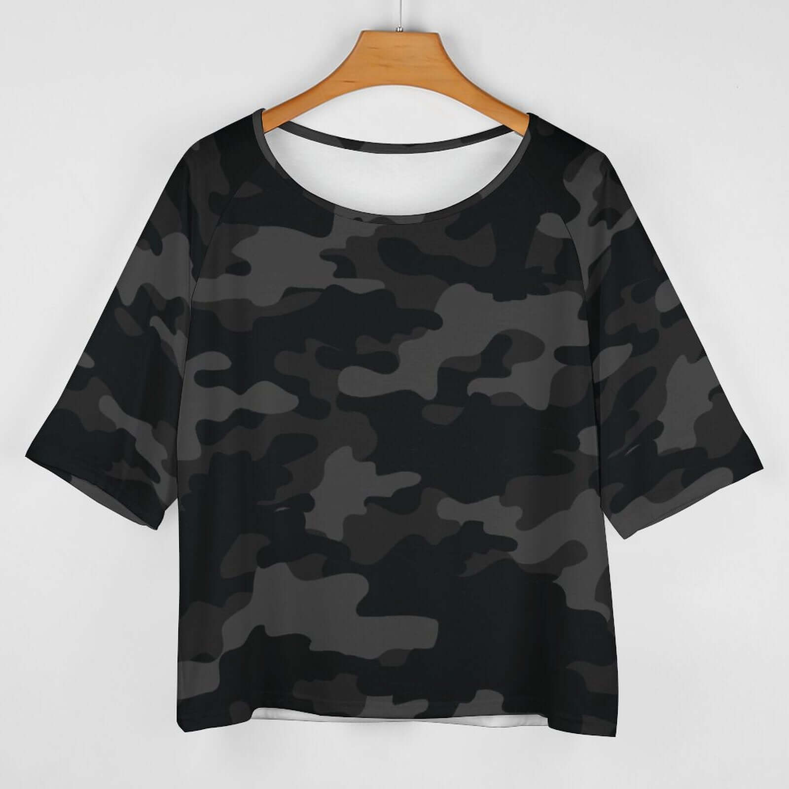 Camo Shirt | Off The Shoulder Top | Black Camouflage