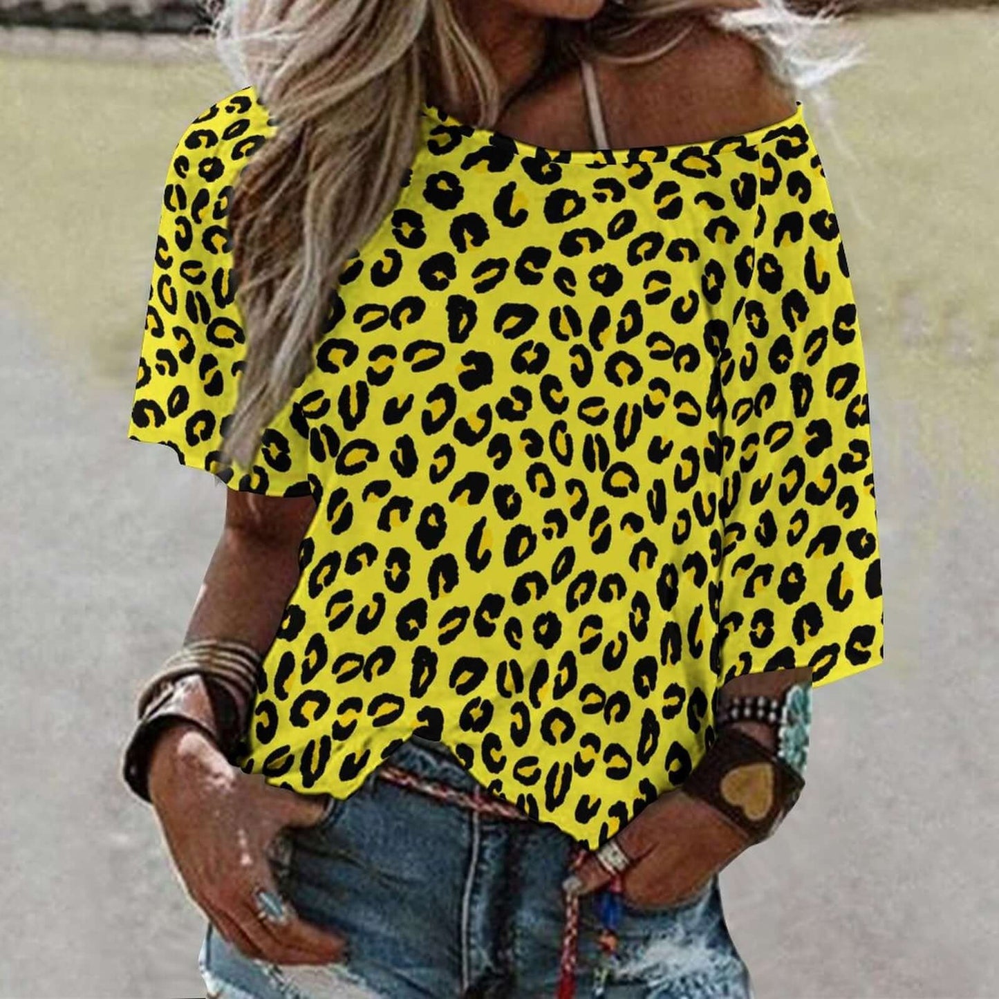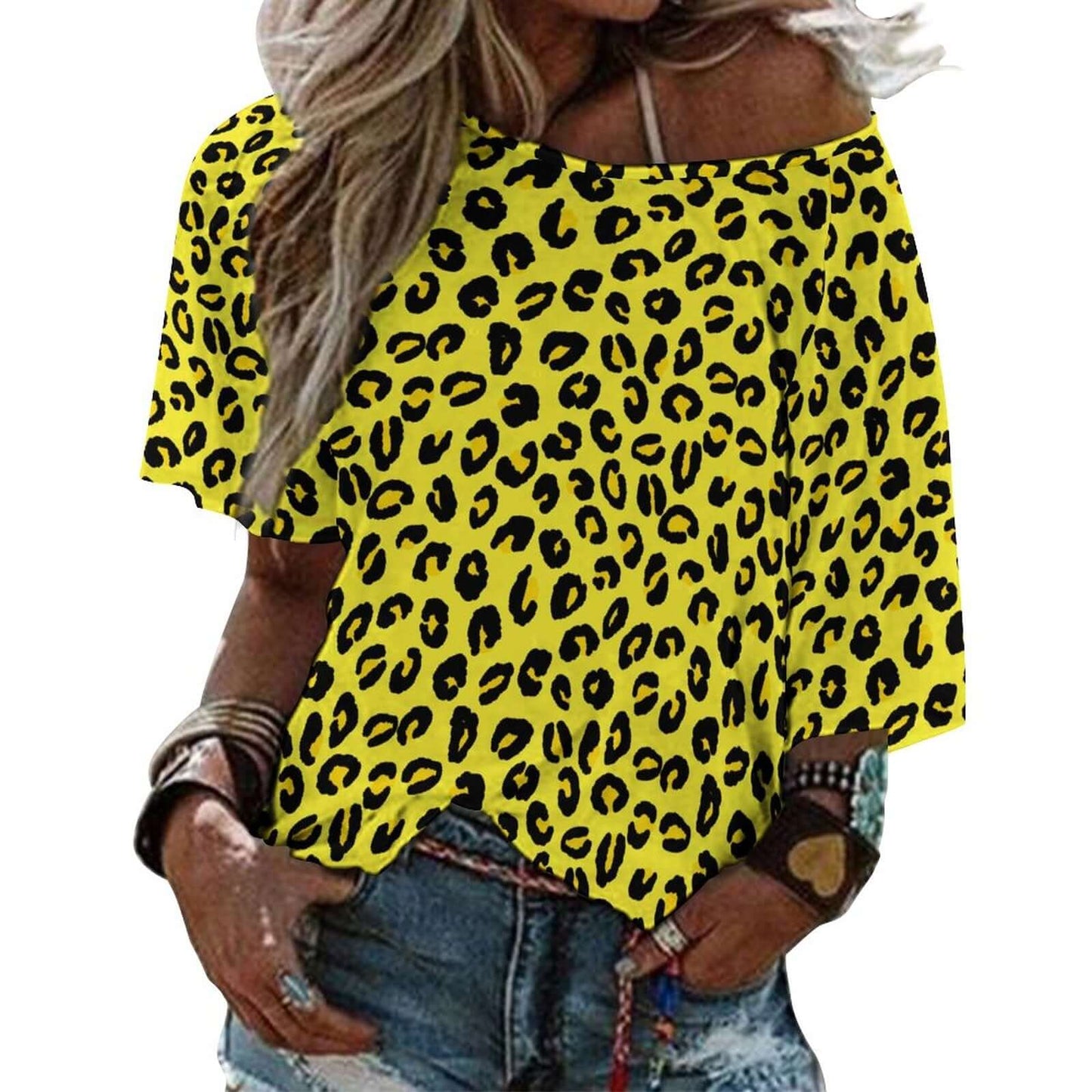 The expertly crafted Off The Shoulder Top is a must-have addition to your wardrobe. With a stylish and on-trend leopard print design, this top is perfect for adding a touch of statement to any outfit. The off the shoulder style adds a touch of femininity, while the vibrant yellow and black color combination is sure to make a bold statement. Embrace your inner fashionista with this versatile and eye-catching top.