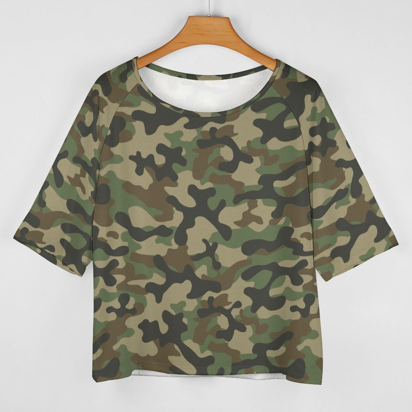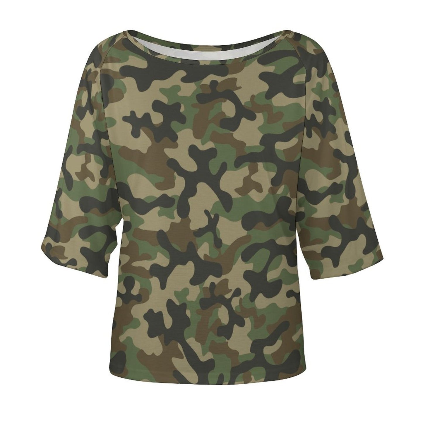 Camo Shirt | Off The Shoulder Top | Military Brown