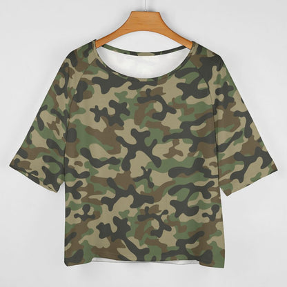 Elevate your style with our Off The Shoulder Top in Military Brown Camouflage. This top features a striking off the shoulder design and is adorned with a unique military-inspired brown camouflage pattern. Stay on-trend and stand out in this must-have piece.