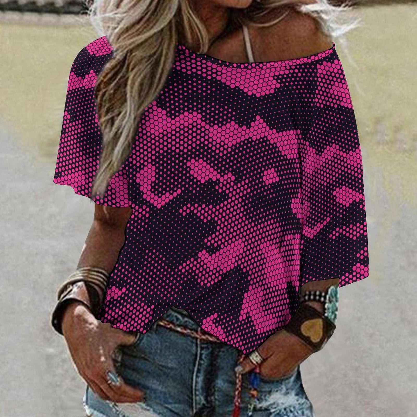 Camo Shirt | Off The Shoulder Top | Pink Digital