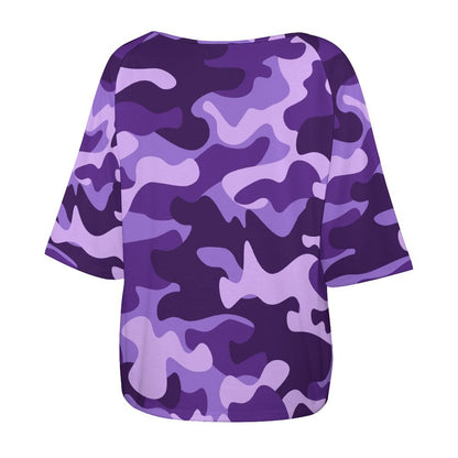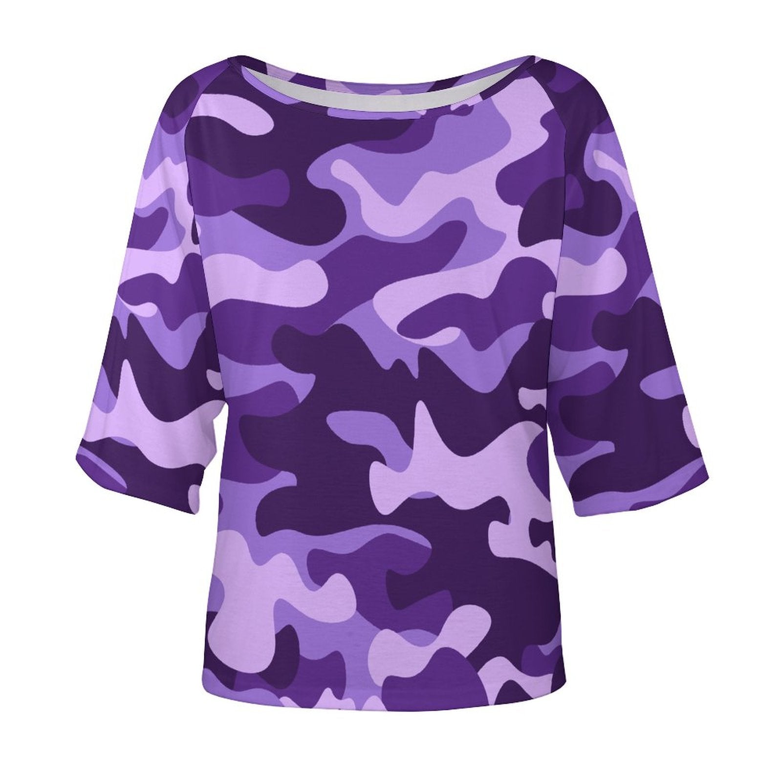Camo Shirt | Off The Shoulder Top | Purple, Blue and Mauve