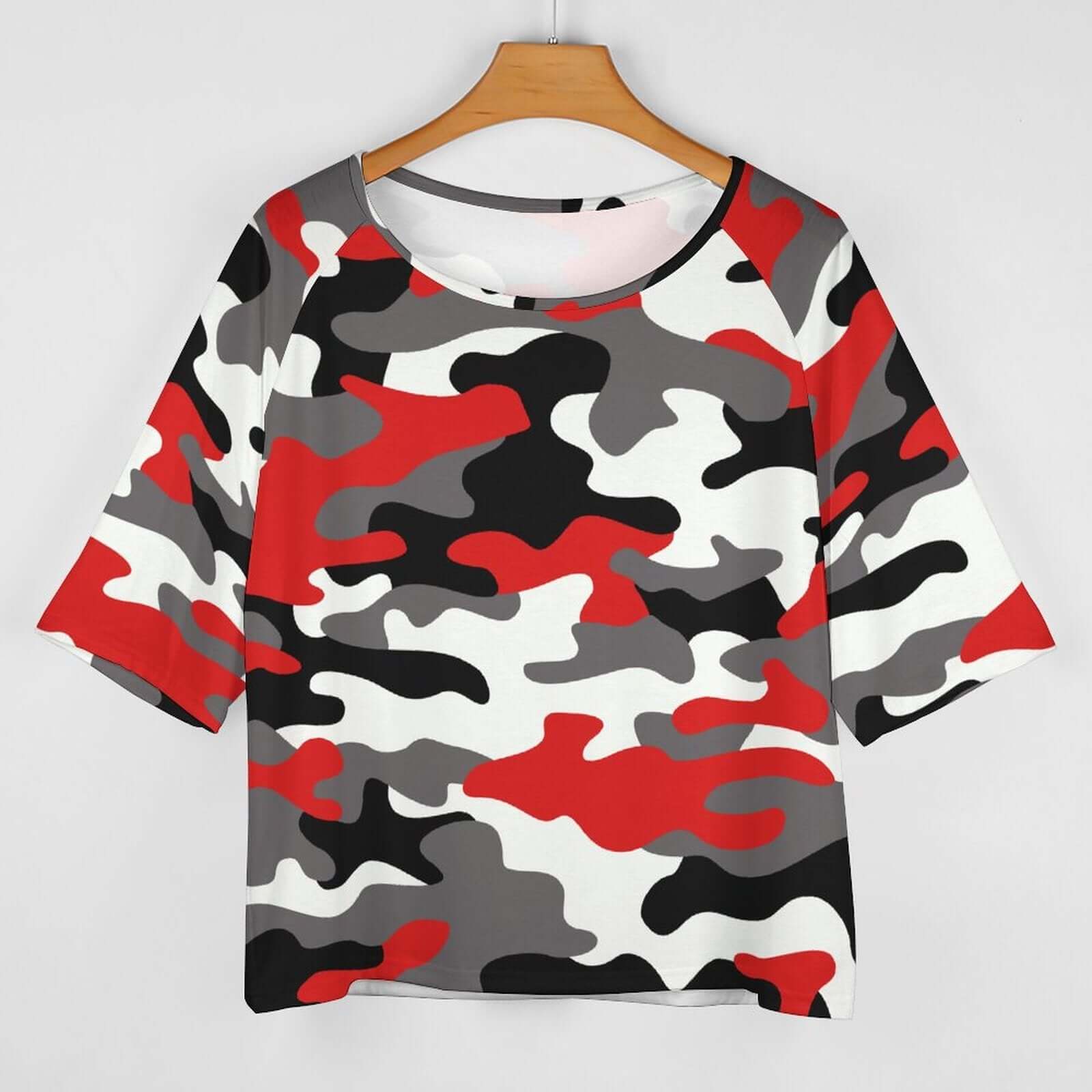 Camo Shirt | Off The Shoulder Top | Red, Black, and White
