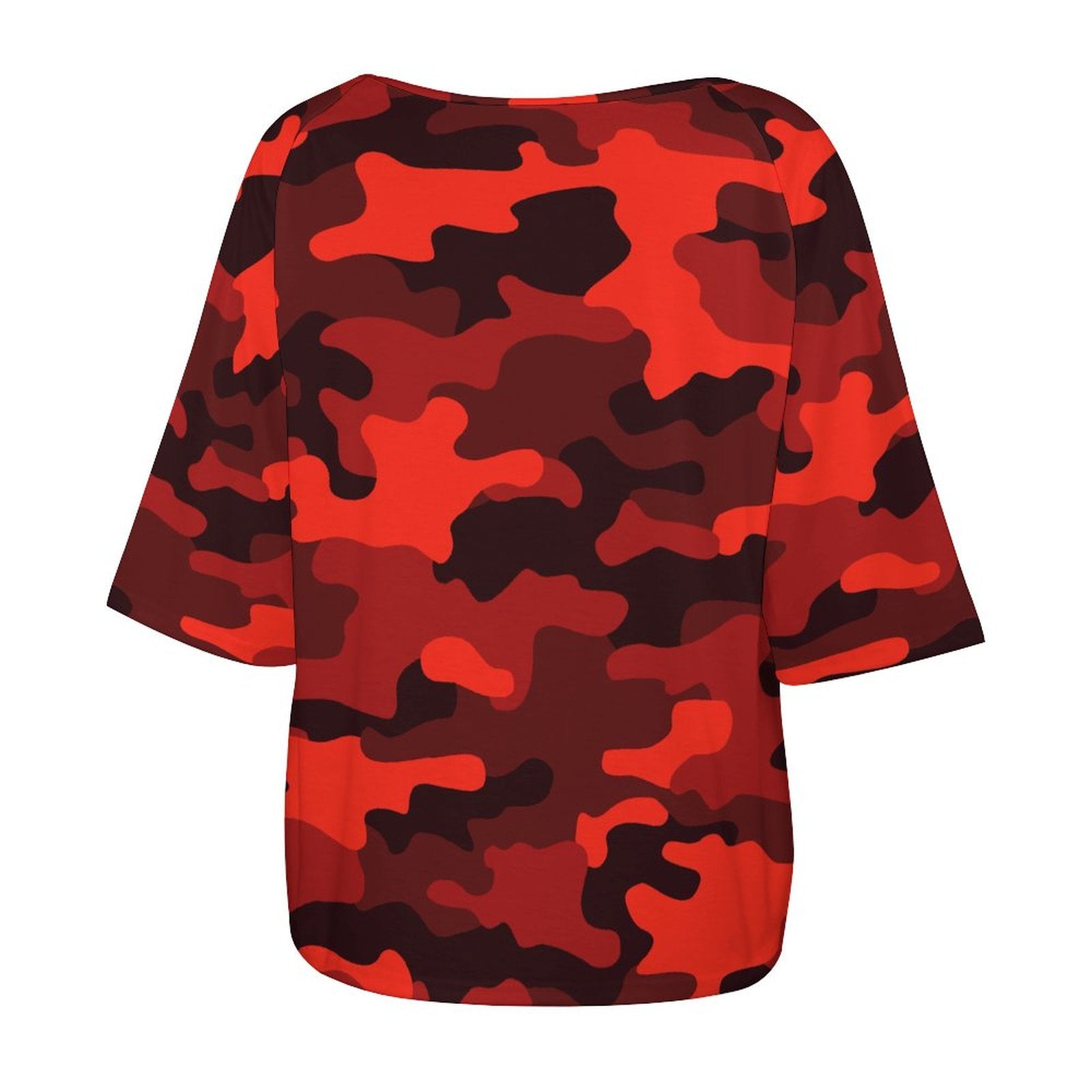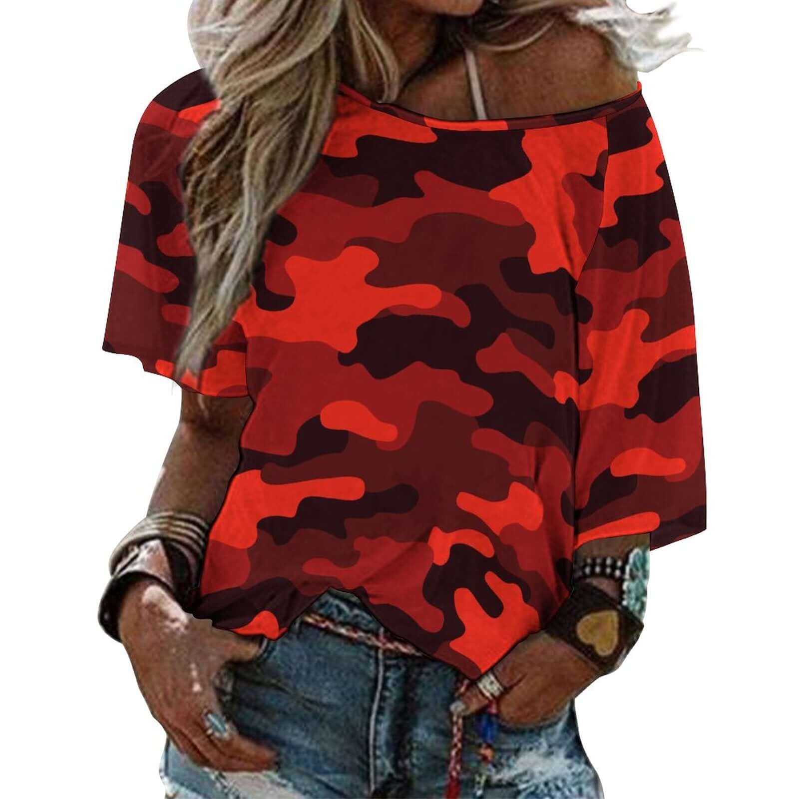 Camo Shirt | Off The Shoulder Top | Scarlet Red & Black