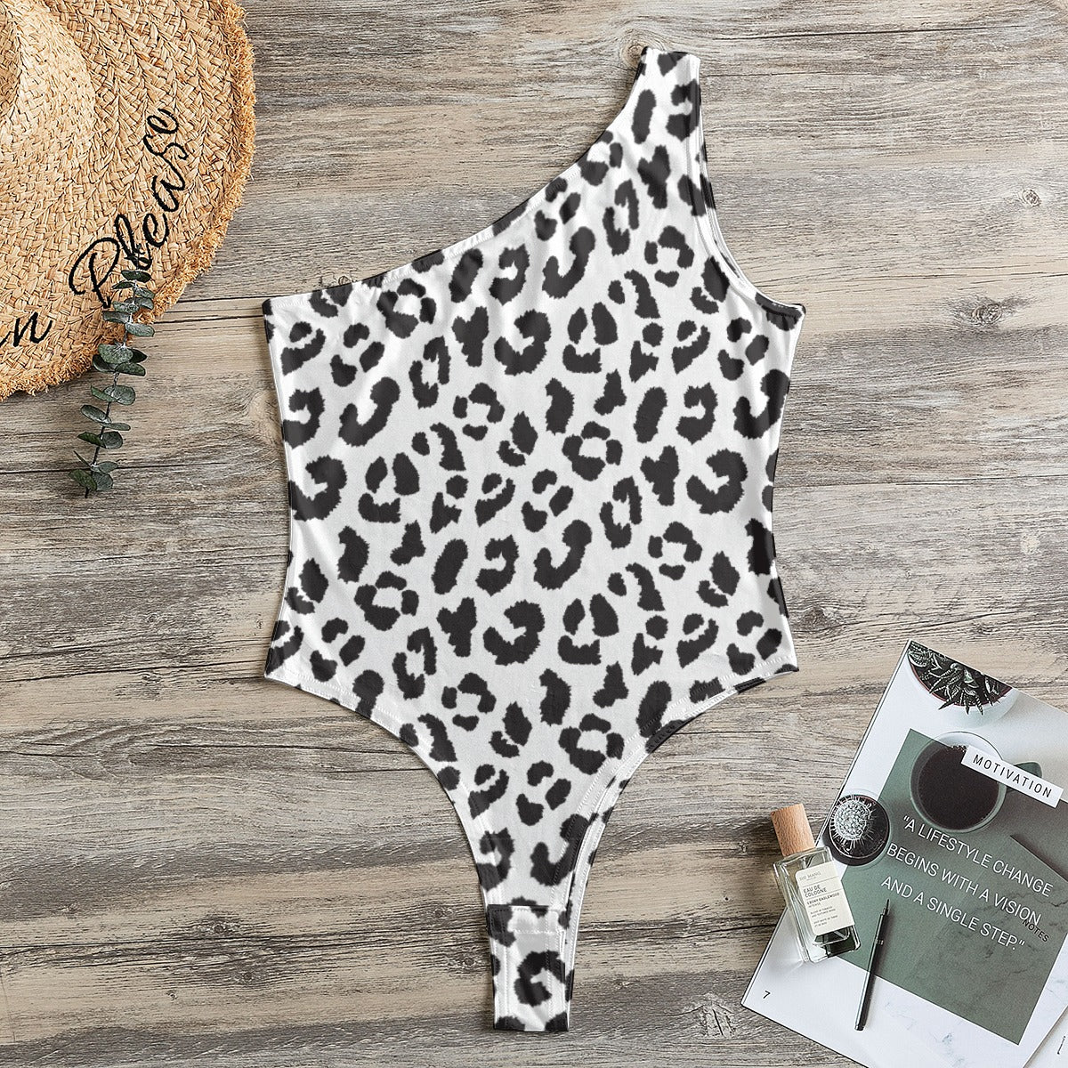 One-Shoulder Bodysuit | Leopard Print in Black and White