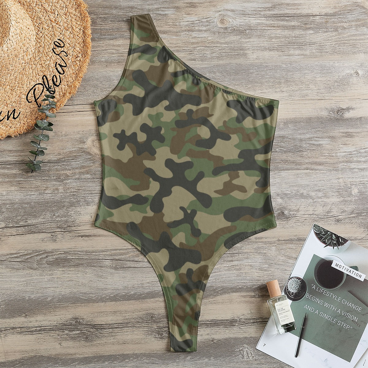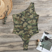 One-Shoulder Bodysuit | Military Brown Camouflage