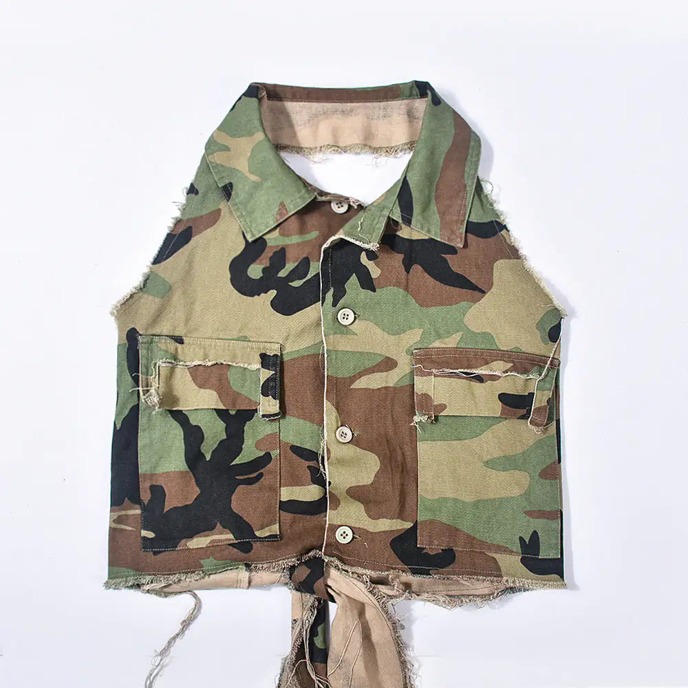 With an edgy distressed trim and captivating camouflage pattern, this tank demands attention wherever you go. Crafted from high-quality polyester, it promises both durability and style, ensuring that you'll turn heads for seasons to come.