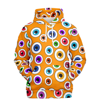 Transform into the ultimate creepy cutie with our Orange Halloween Hoodie, complete with a playful pattern of creepy cute eyeballs. Made with soft and comfortable fabric, this hoodie will keep you warm and stylish at any Halloween party or event. Get ready to turn heads and make a statement with this unique and fun hoodie.