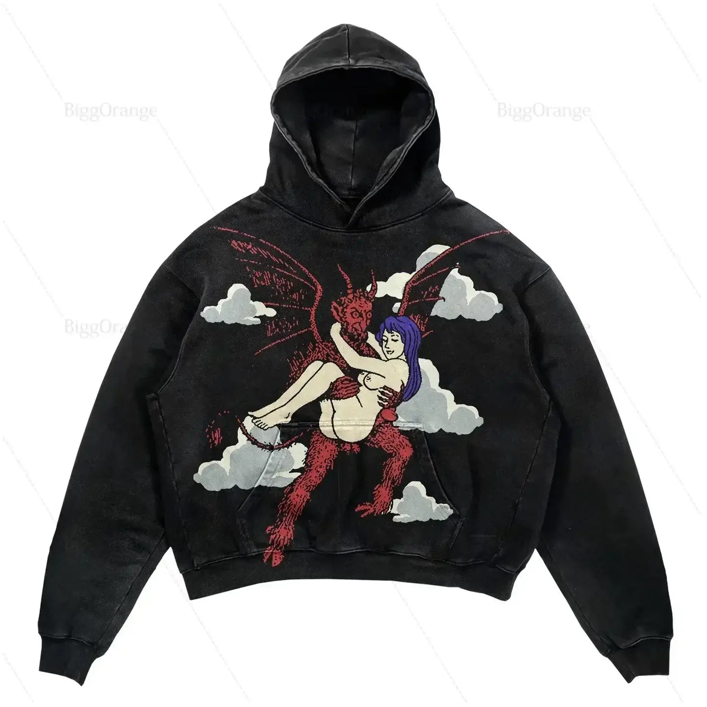 Oversized Demon Print Hoodie – Vintage Streetwear Style