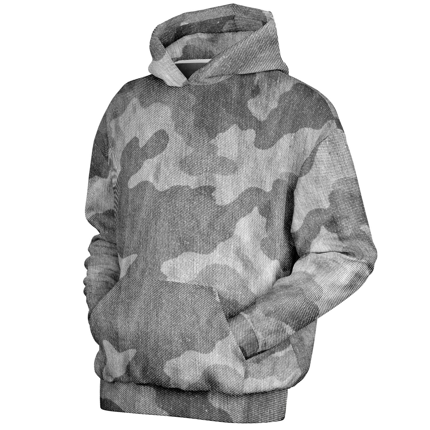 Crafted from a premium polyester-spandex blend, this hoodie offers all-day comfort while keeping you warm and cozy. The spacious hood, ribbed cuffs, and kangaroo pocket make it both functional and fashionable. Whether you're layering up or wearing it solo, this hoodie guarantees you’ll stand out with its striking monochrome camo pattern.