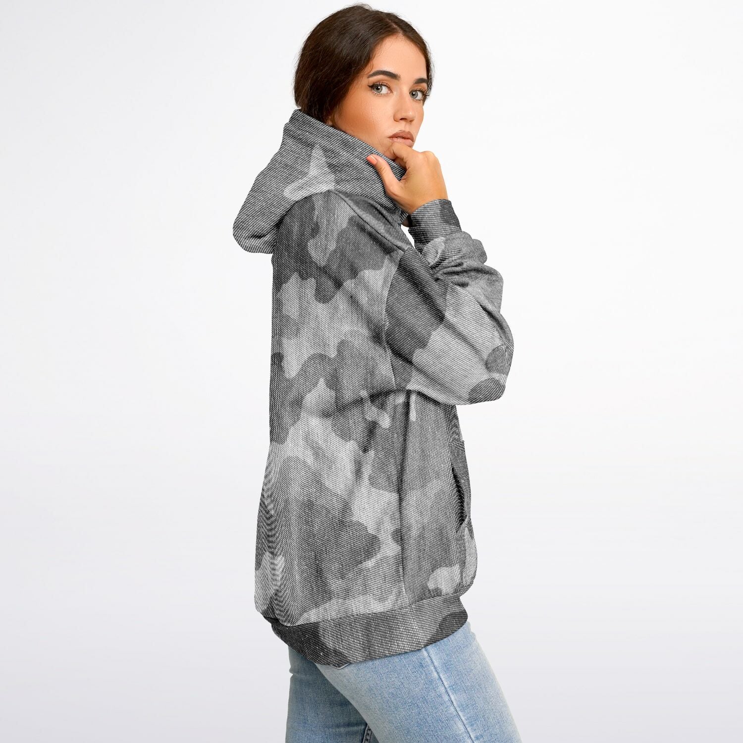 Oversized Hoodie | Black & White Camouflage Uniform Cloth Pattern