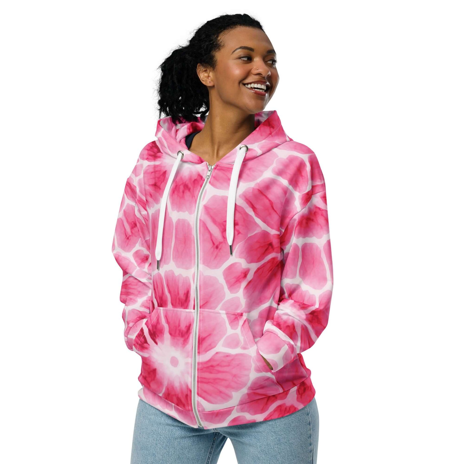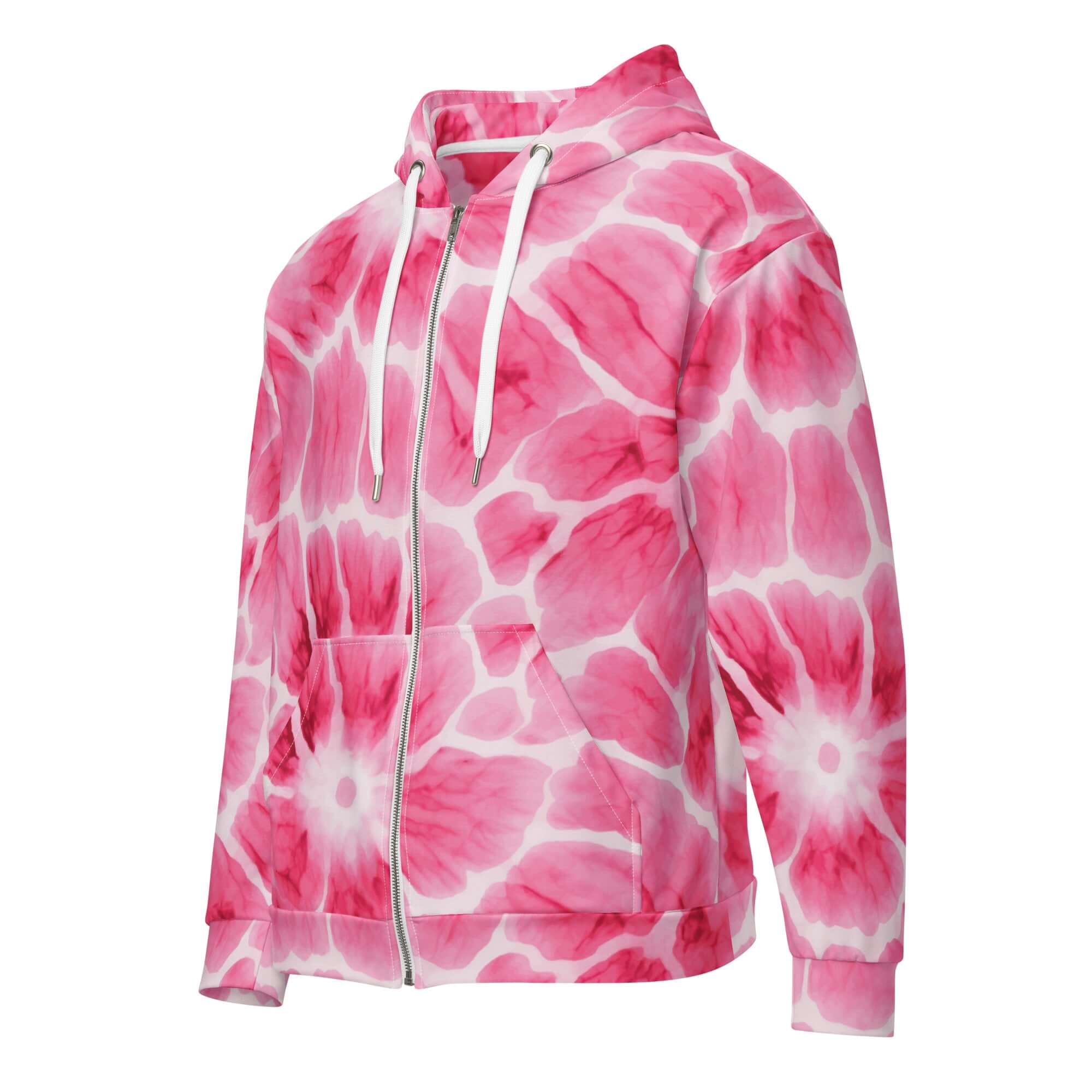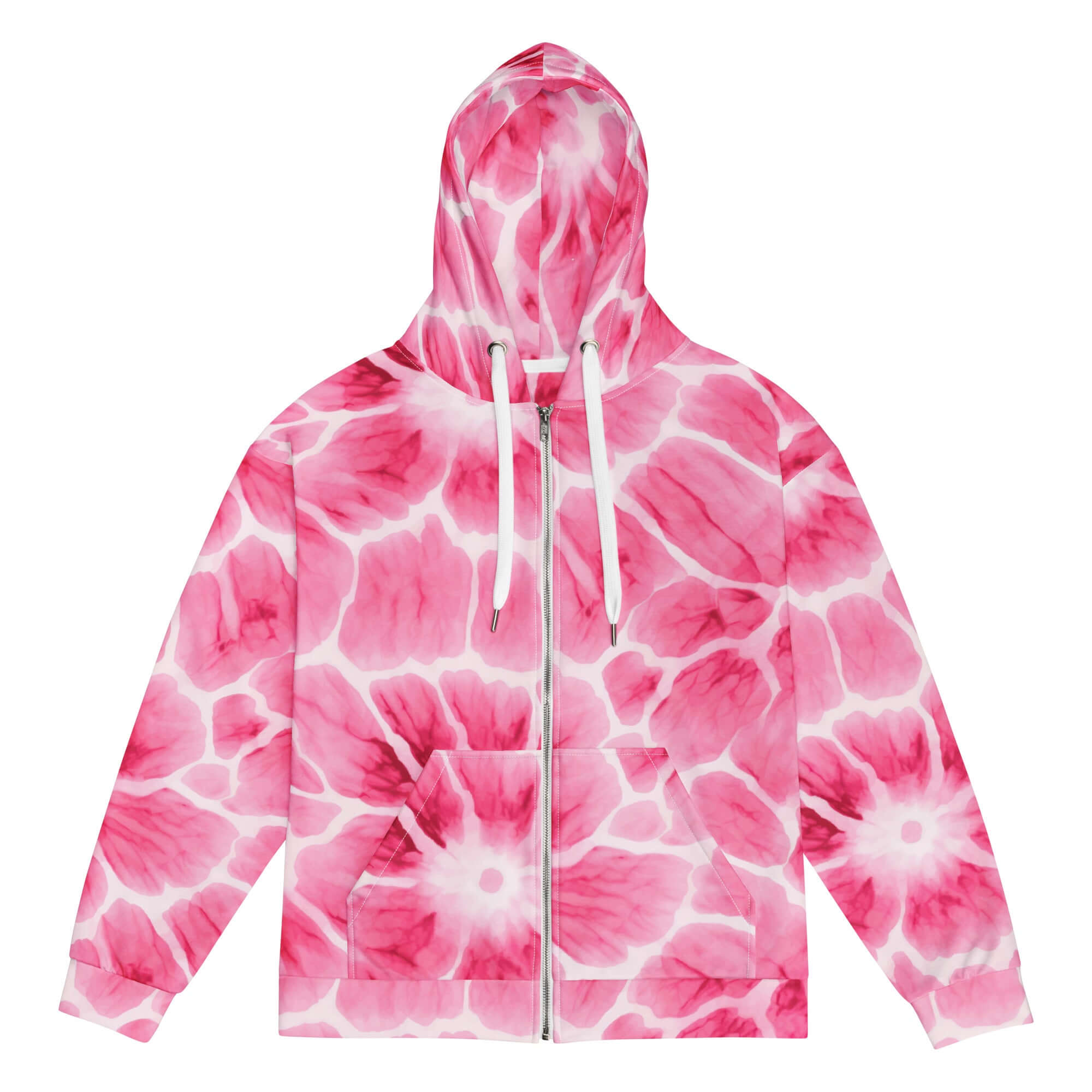 Stay cozy and stylish with our Pink & White Tie-Dye Zip Hoodie. Made of soft and swirl-patterned fabric, this hoodie exudes chill vibes. Perfect for any casual occasion, it's a must-have for any wardrobe. Add a pop of color with its pink and white tie-dye design. Available now.
