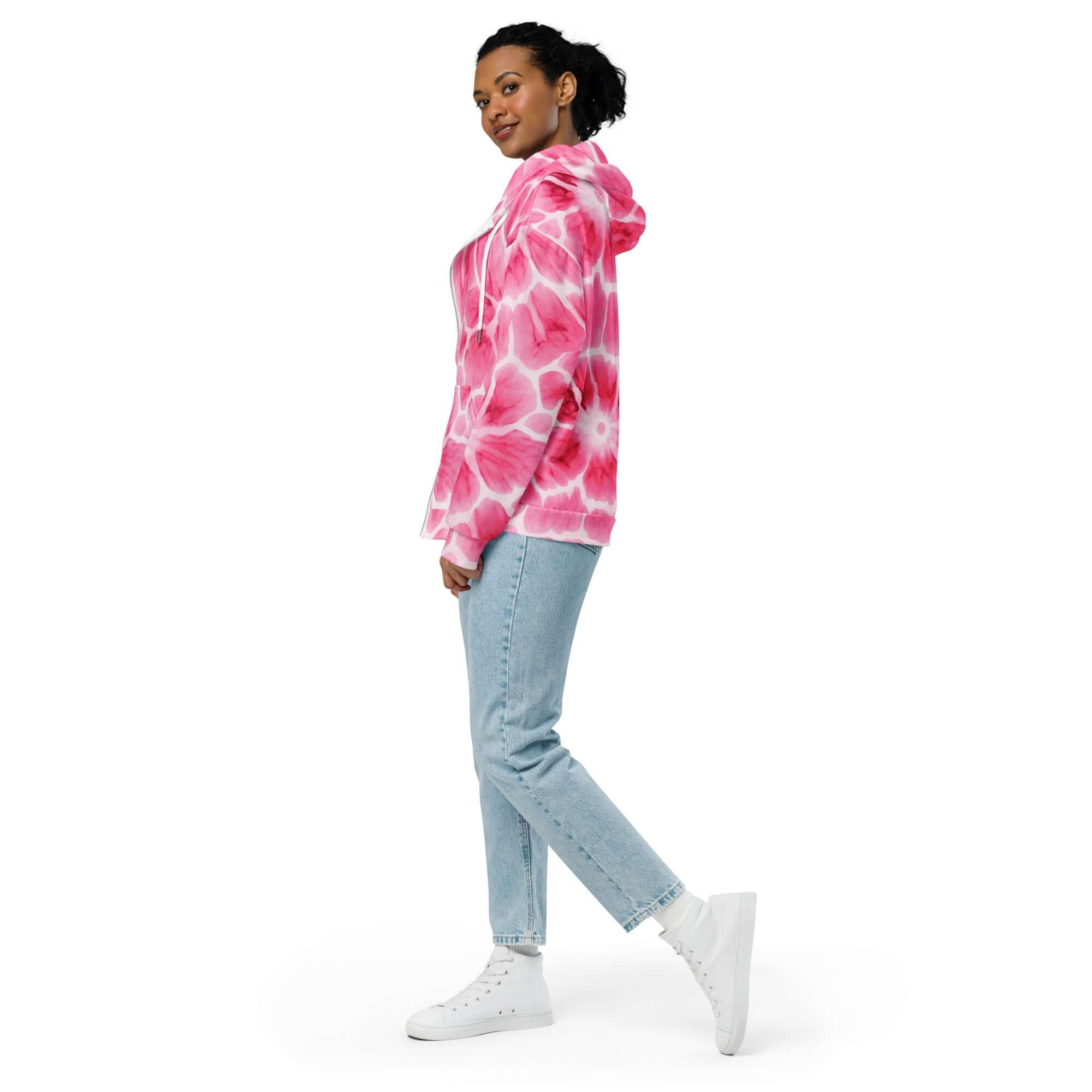 Pink & White Tie-Dye Zip Hoodie – Soft, Swirly & Chill