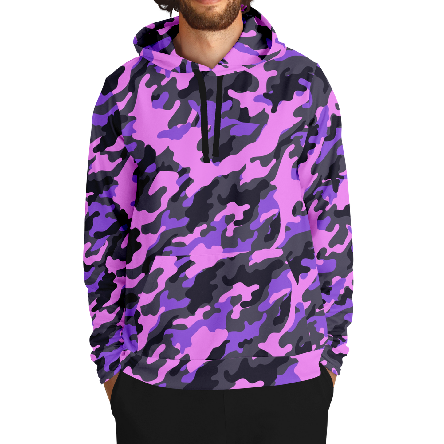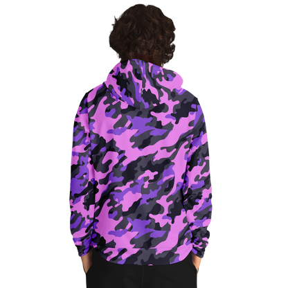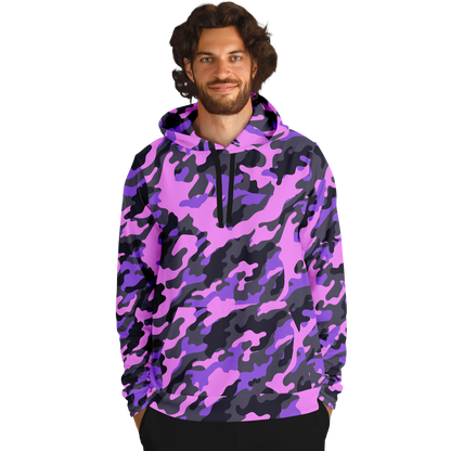 Unleash your inner fashionista with our Pink Camo Hoodie, featuring a unique Black & Indigo Mixed Camouflage pattern. Stay stylish and warm in the colder months with this statement piece. Crafted with high-quality materials, it offers both functionality and fashion in one.
