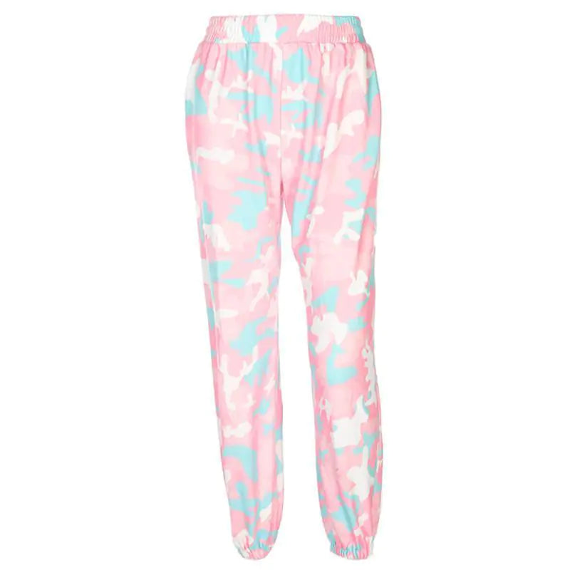 Show off your unique style with these trendy pink camo pants. Their vibrant pattern and versatile design make them ideal for mixing and matching with your favorite tops and accessories, letting you create a variety of standout looks.