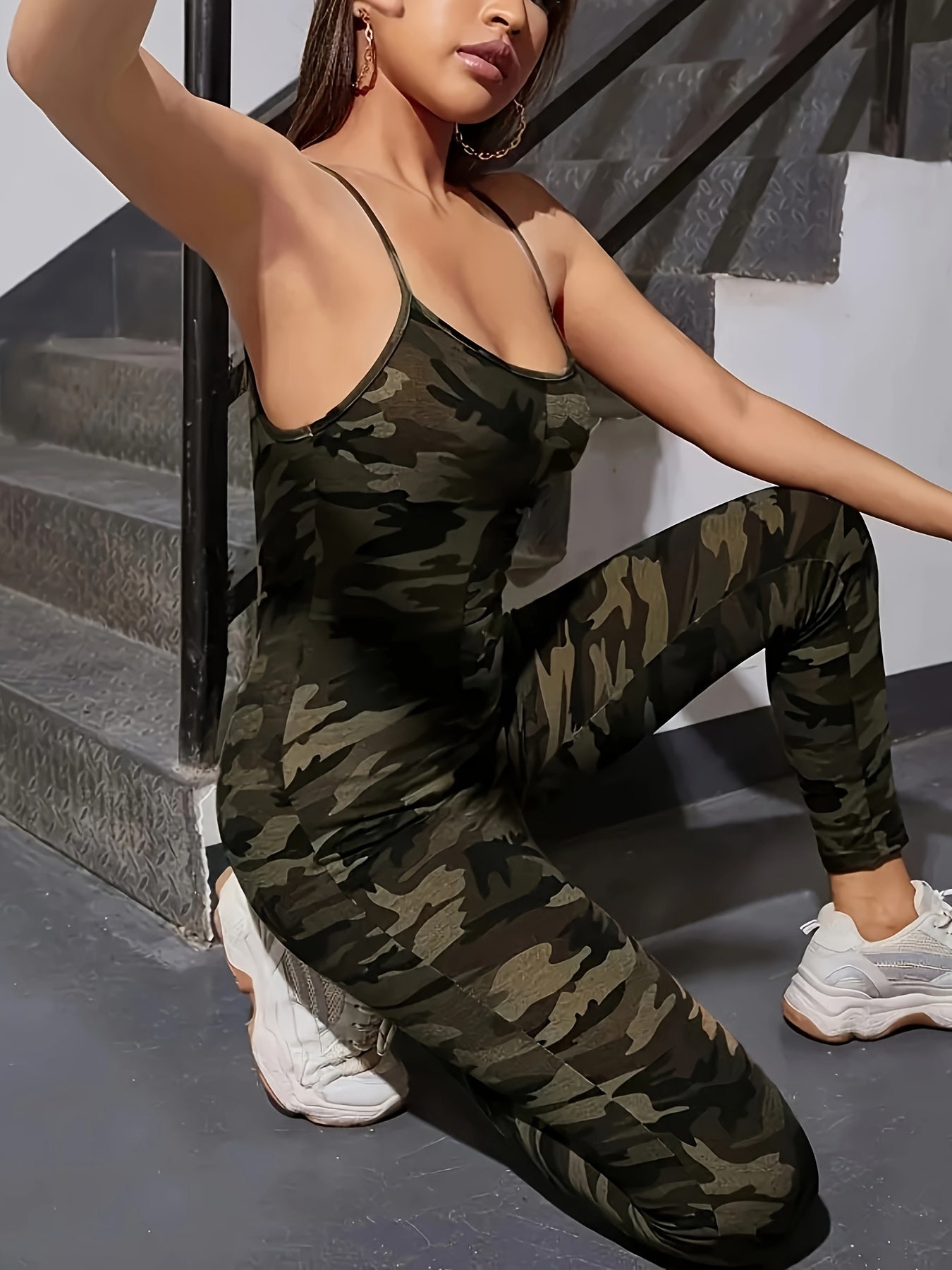 Upgrade your wardrobe with this Plus Size Camo Print Slip Jumpsuit, blending comfort, style, and a touch of boldness effortlessly.