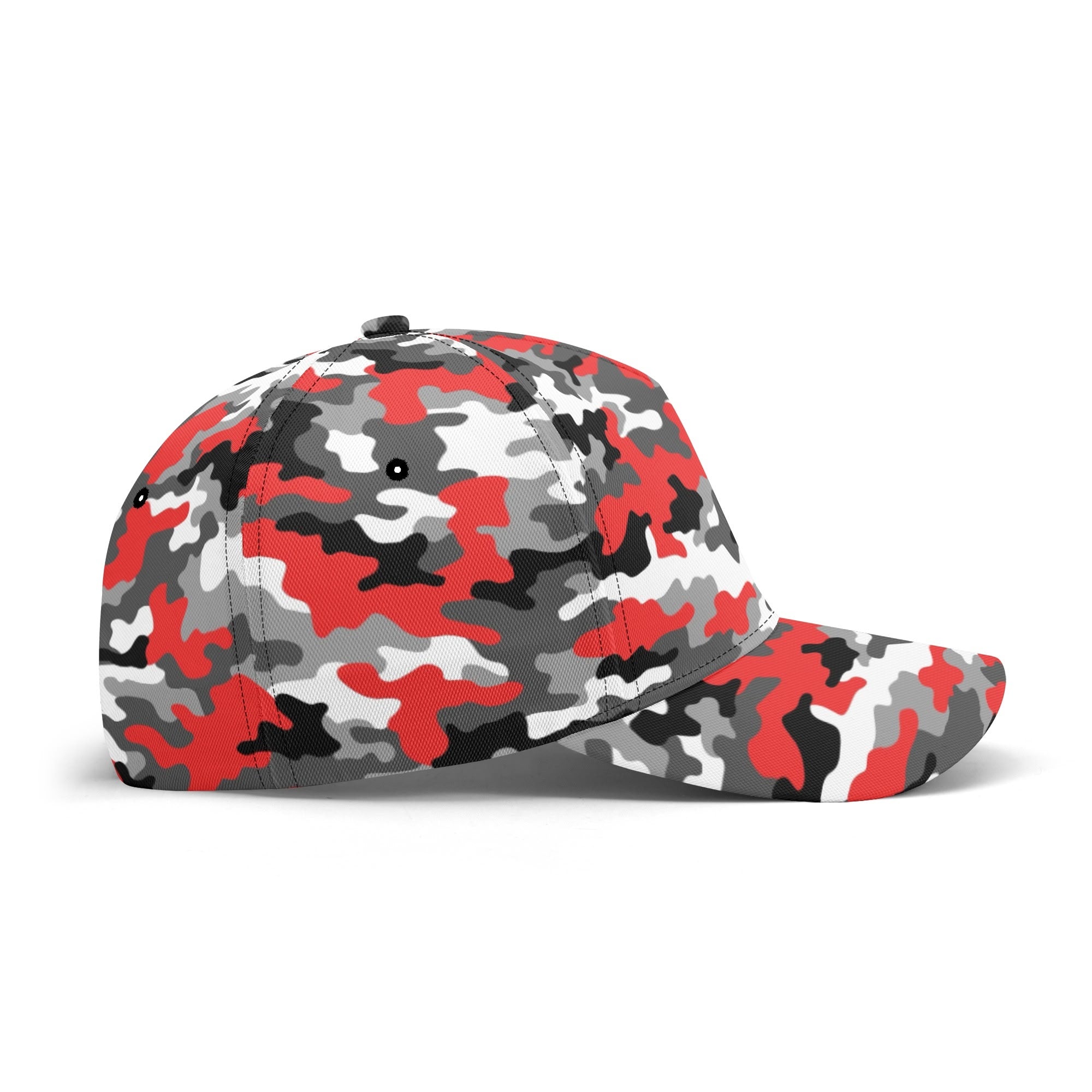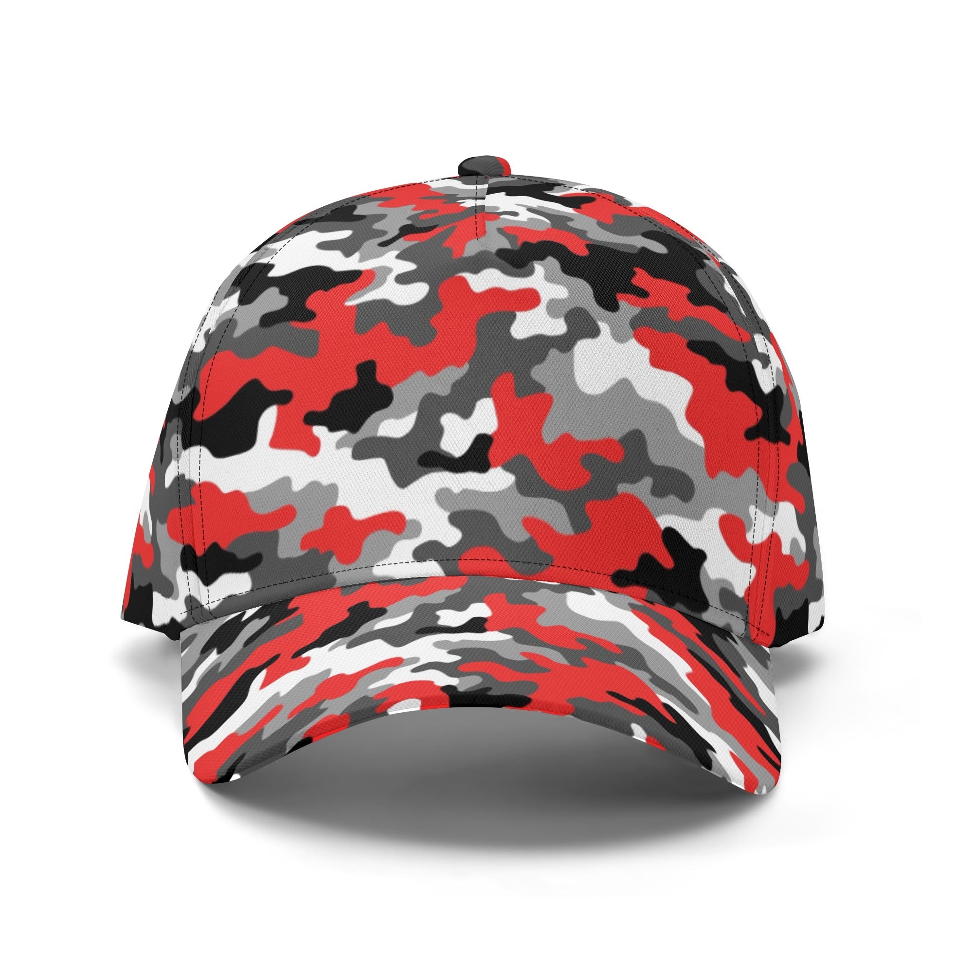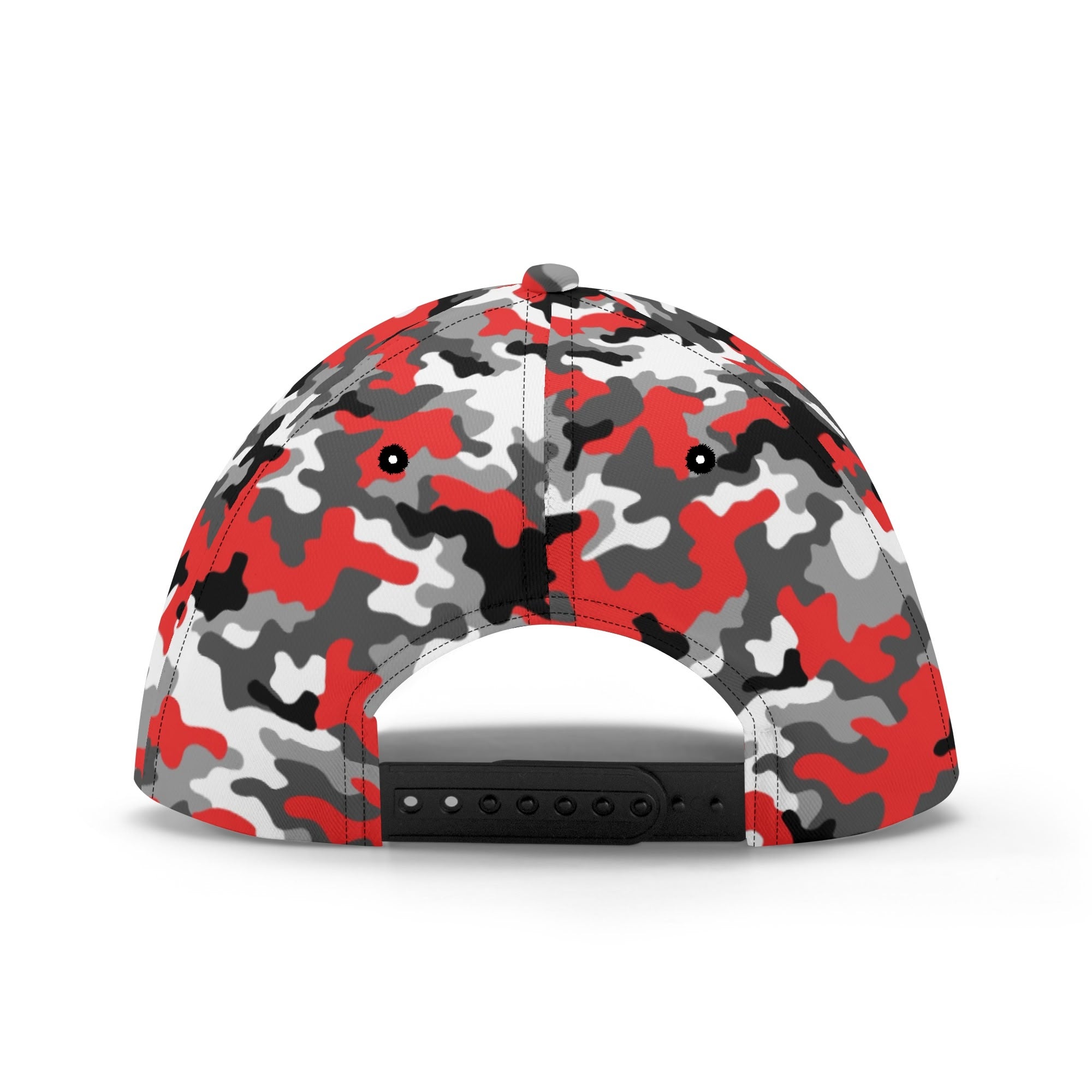 Red Camo Cap | Gray, Black, and White Mixed Camouflage