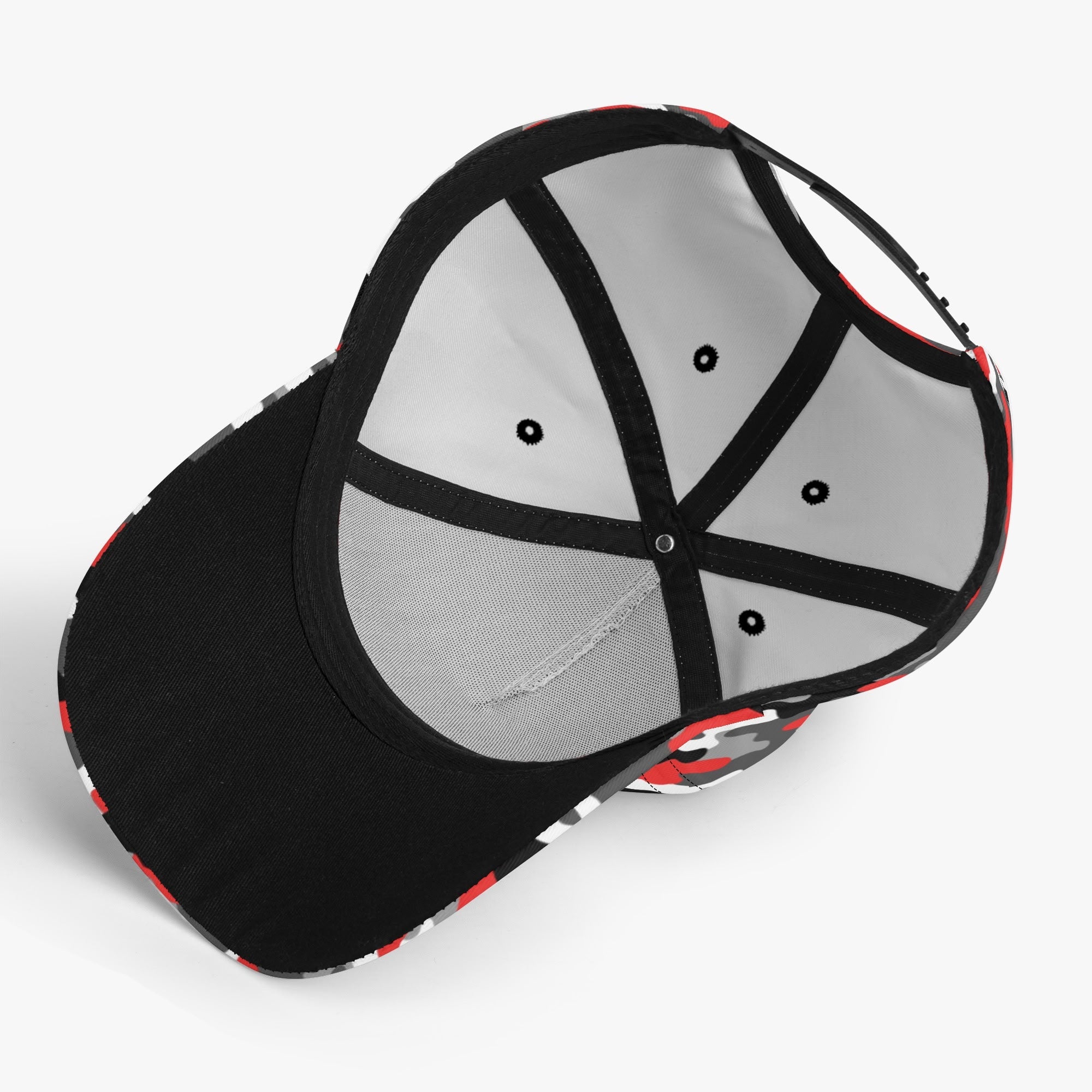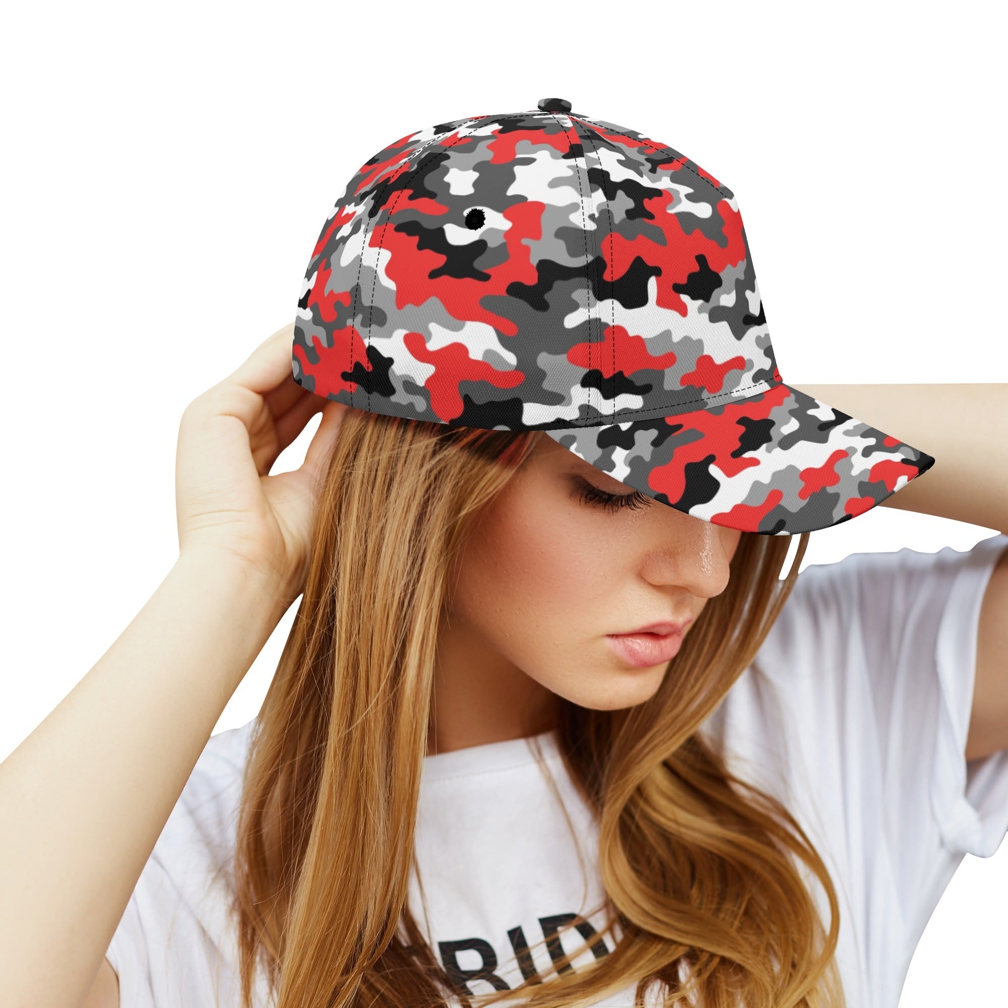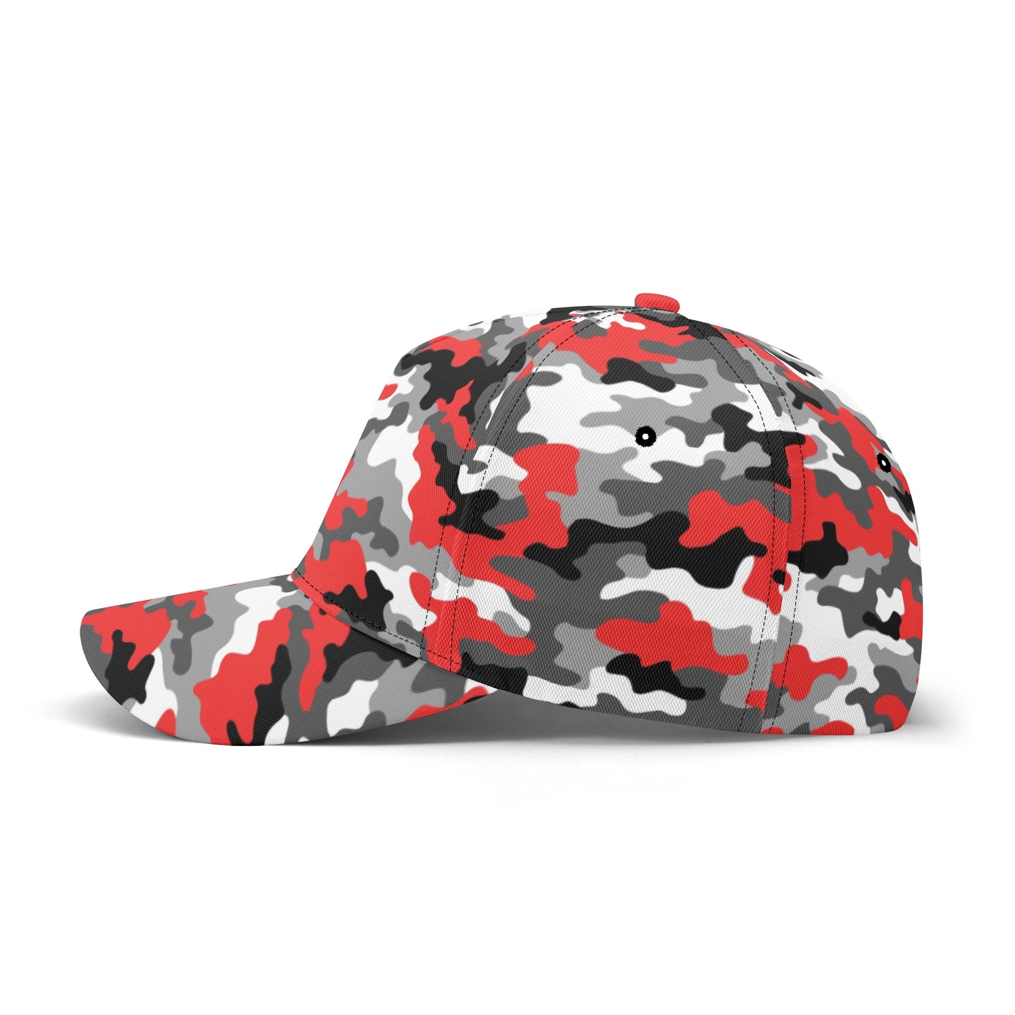 Red Camo Cap | Gray, Black, and White Mixed Camouflage