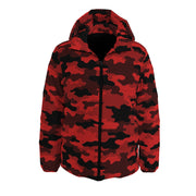Red Camo Down Jacket | Pixel Camouflage Hooded Puffer
