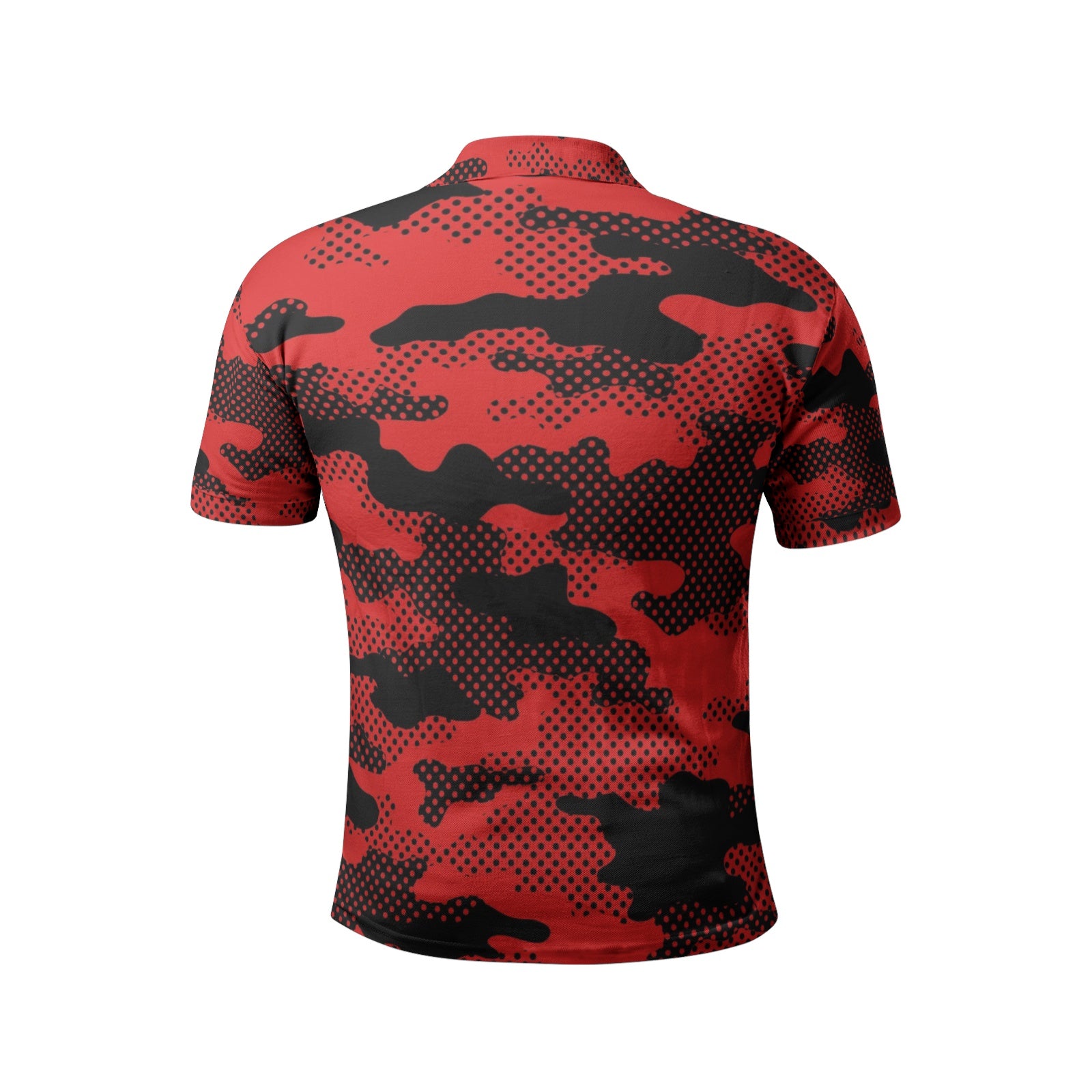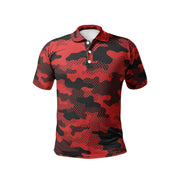 This professional Red Camo Golf Shirt features an eye-catching pixel camouflage design. Made for comfort and style, it's perfect for your next round on the course. With expertly crafted fabric and cutting-edge design, this shirt is a must-have for any golf enthusiast. Upgrade your golf wardrobe with our Red Camo Golf Shirt.
