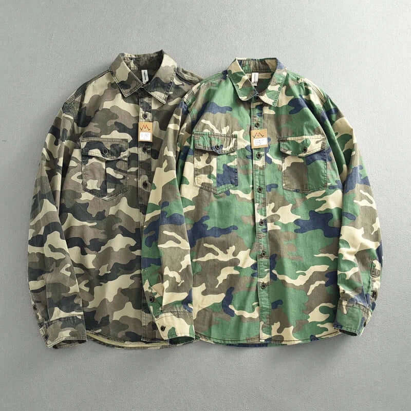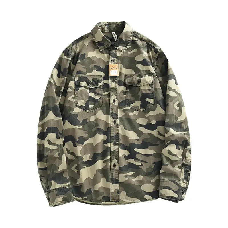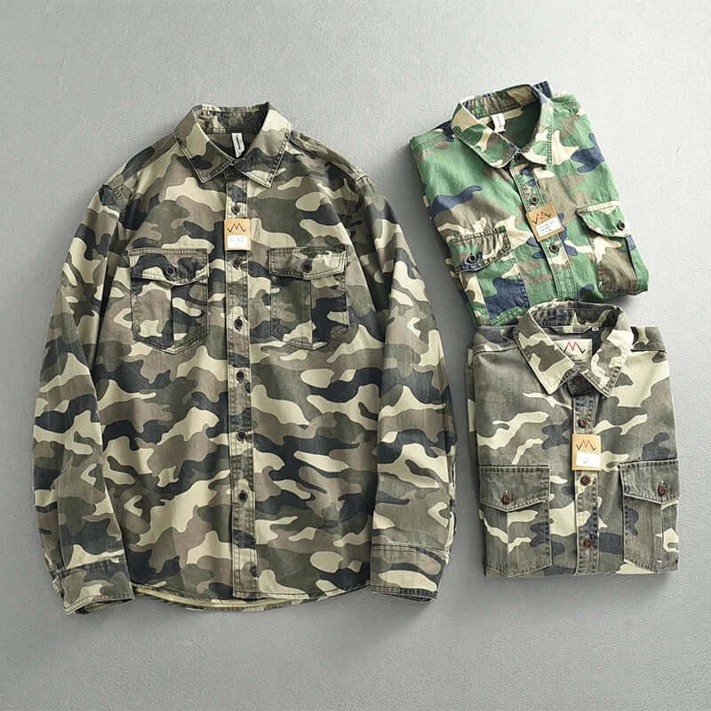 Retro Camouflage Cotton Shirt | Long-Sleeve Casual Shirt