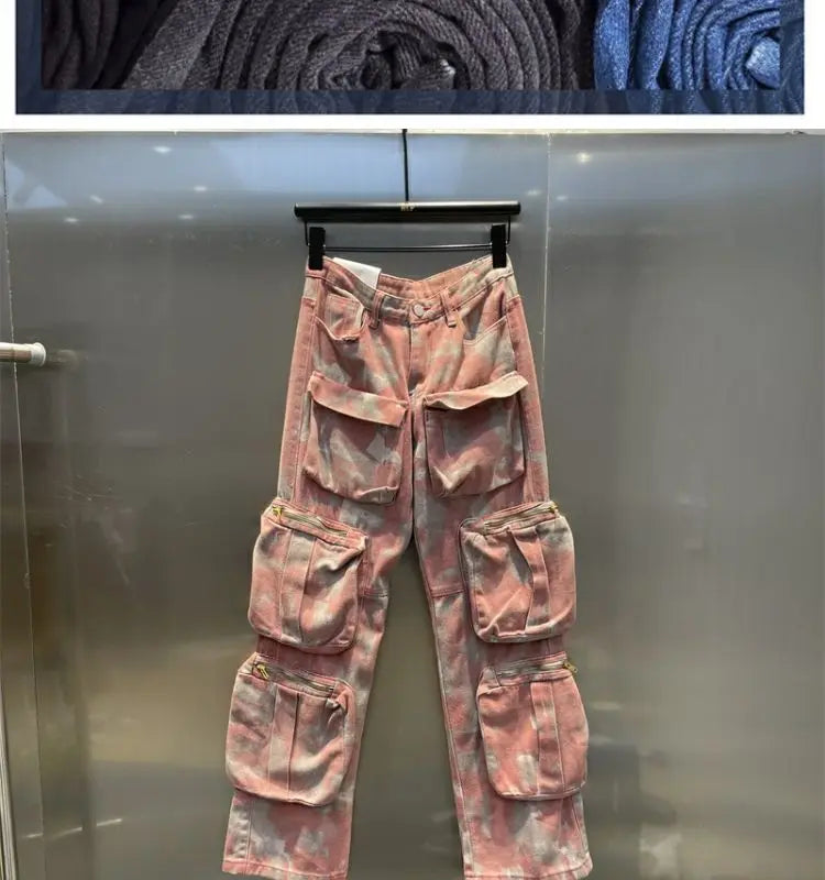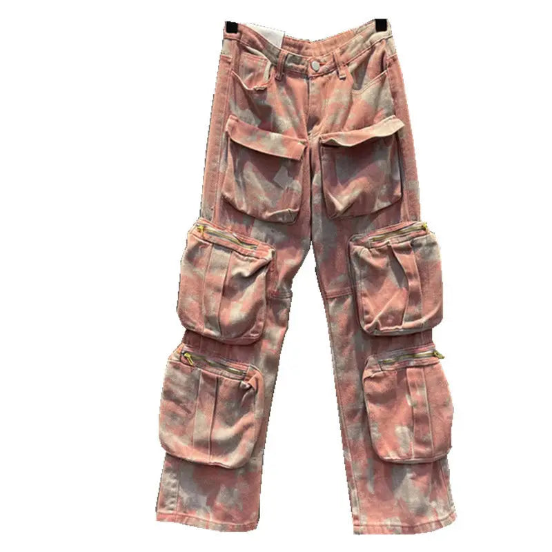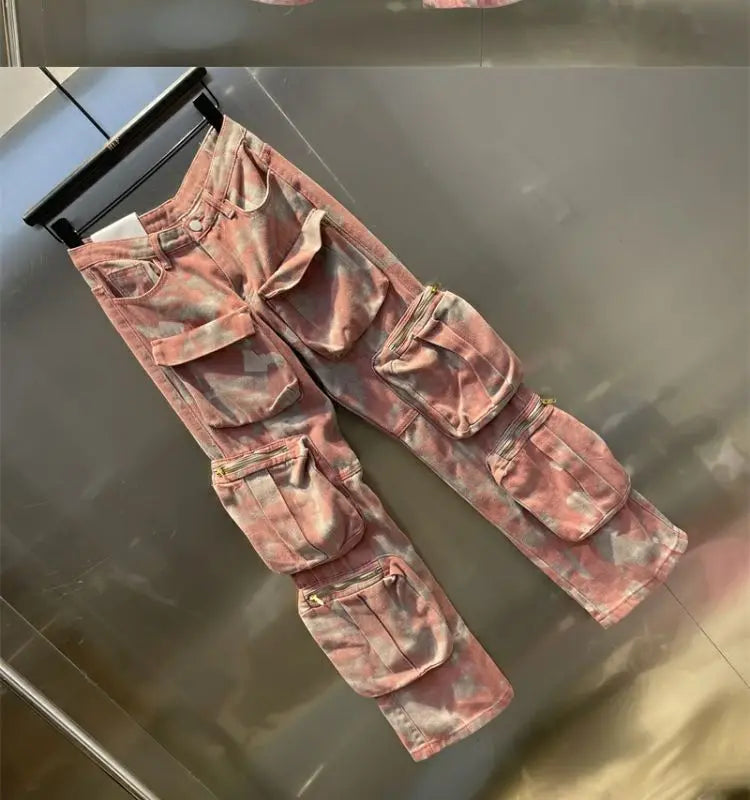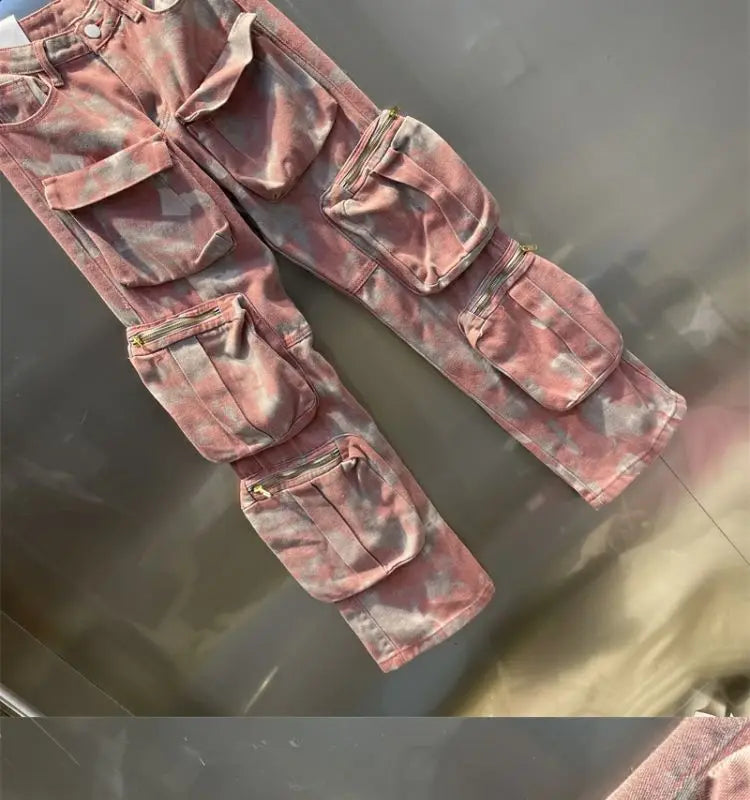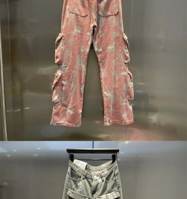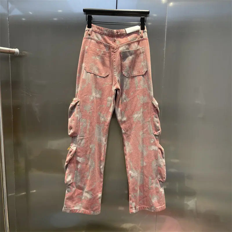 Step up your streetwear game with these Retro Pink Camo Pants, blending punk aesthetics with Harajuku style. These baggy jeans feature a unique pink camouflage pattern, giving you a bold, eye-catching look. Designed with a loose fit, they offer comfort and freedom of movement, perfect for a laid-back yet edgy vibe. The high-waisted design adds to the retro appeal, while the casual, street-ready silhouette makes them ideal for everyday wear. Pair them with your favorite oversized hoodie or graphic tee for a complete punk-inspired outfit. Make a statement in these must-have, fashion-forward camo pants.