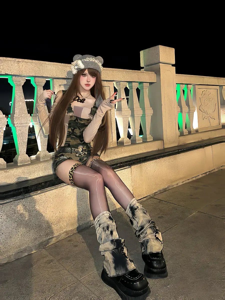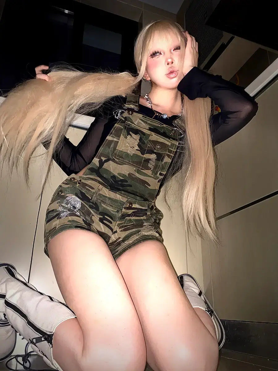 Pair these camo overalls with a fitted crop top or mesh tank underneath to balance the oversized fit. Finish with platform boots or sneakers for full street glam. Throw on chunky silver accessories or layer with a bomber jacket from the Camo Colors outerwear collection to complete your look.