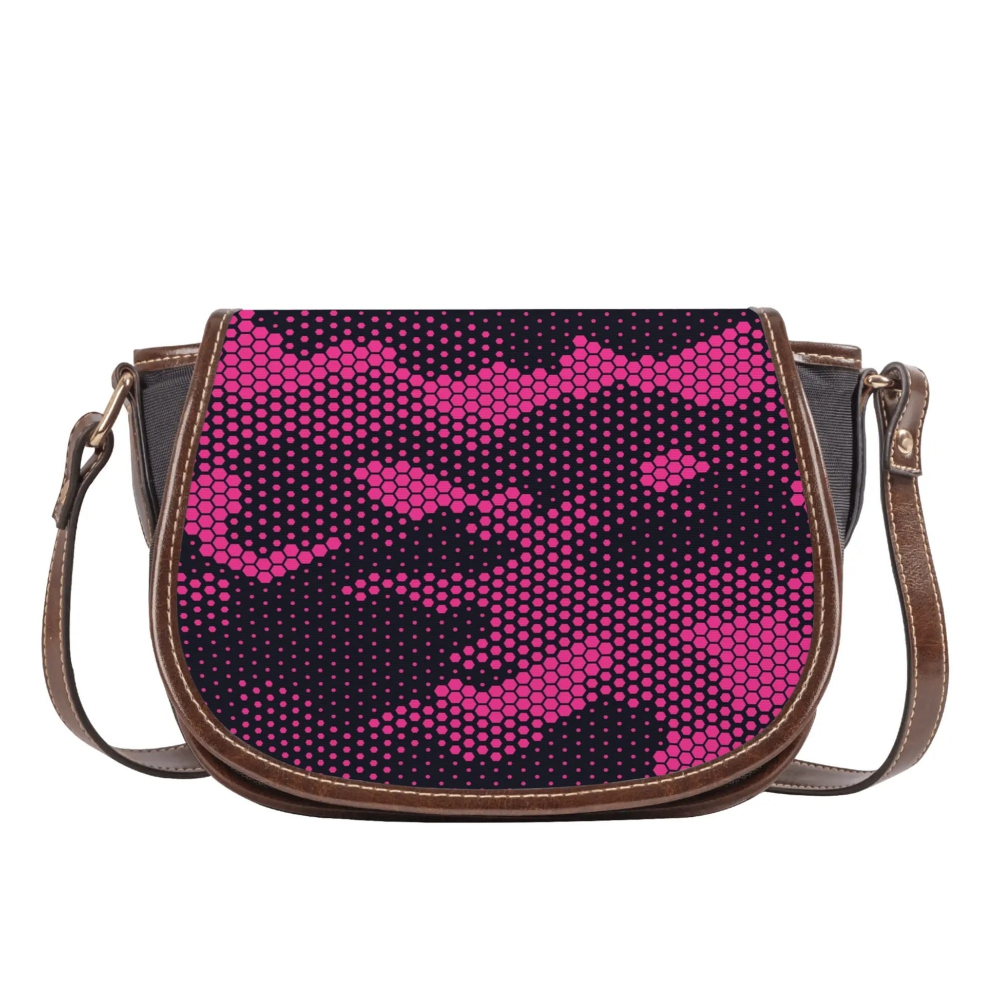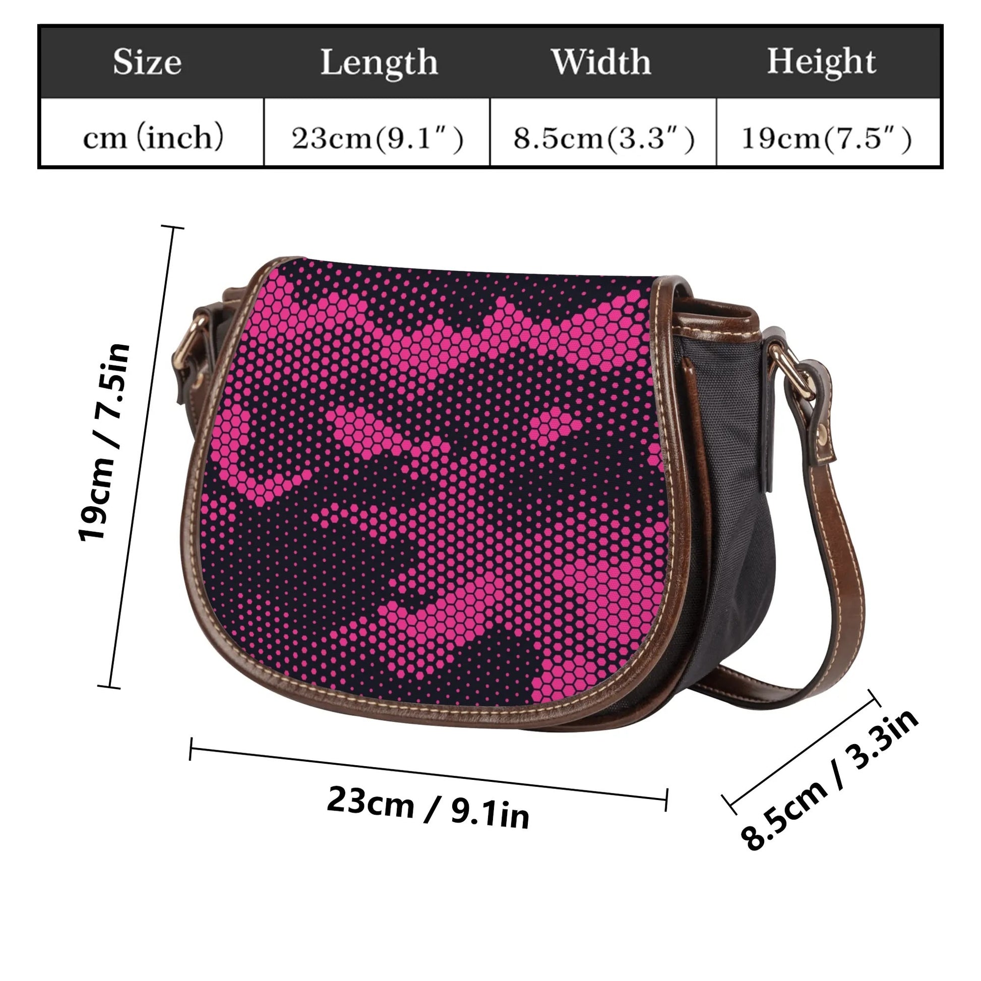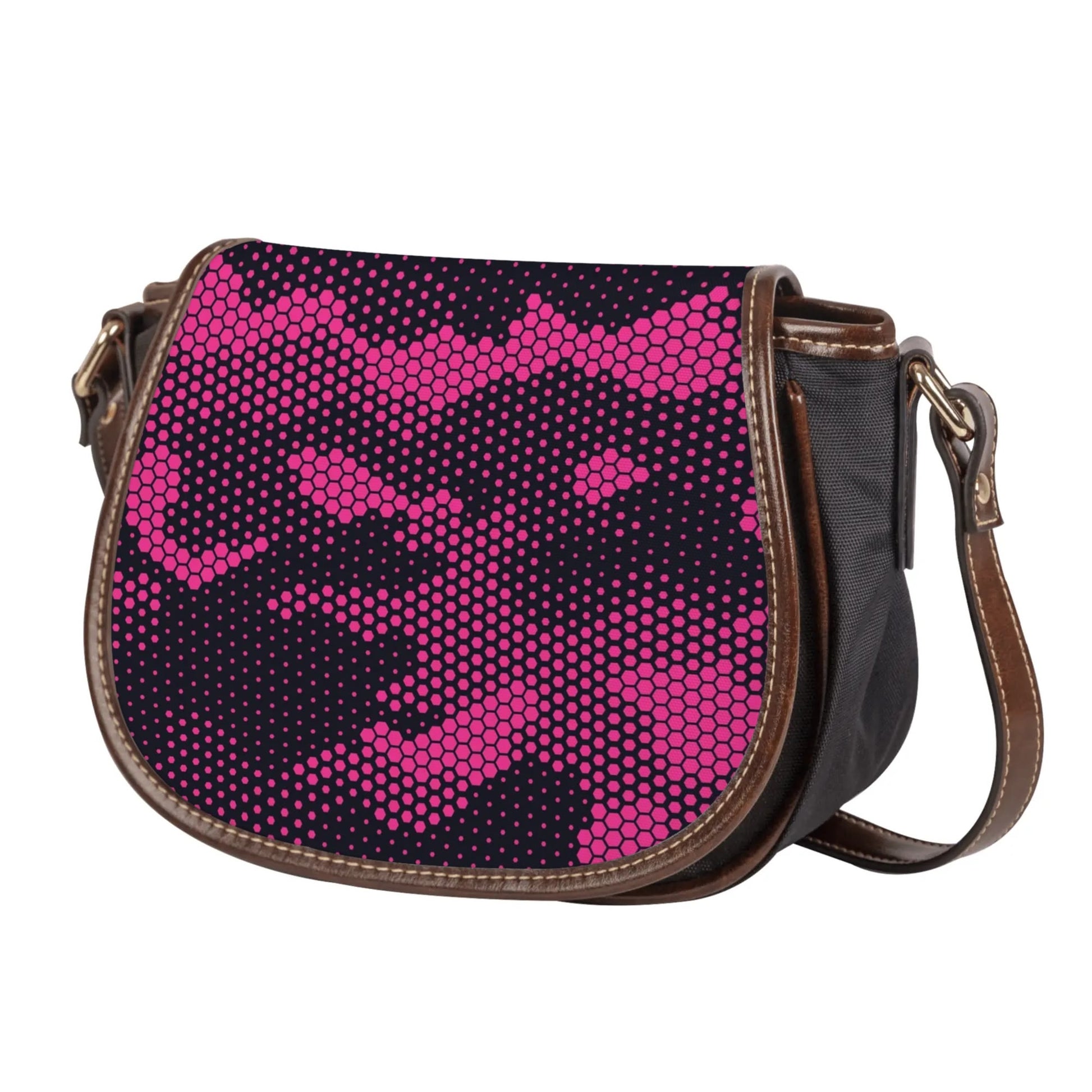 This Saddle Bag features a stylish Digital Pink Camouflage design. Made of durable materials, it is perfect for holding essentials during outdoor activities. With its eye-catching design, this bag adds a touch of personality while providing functionality.