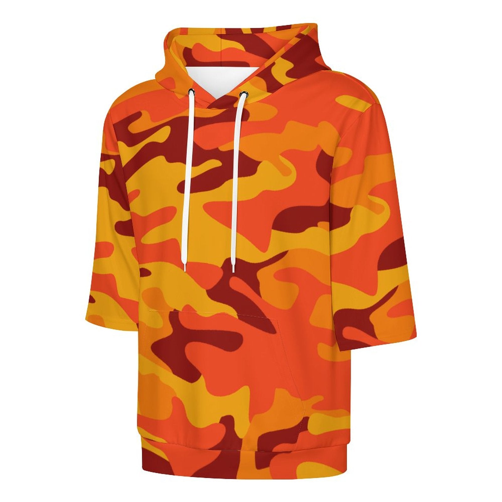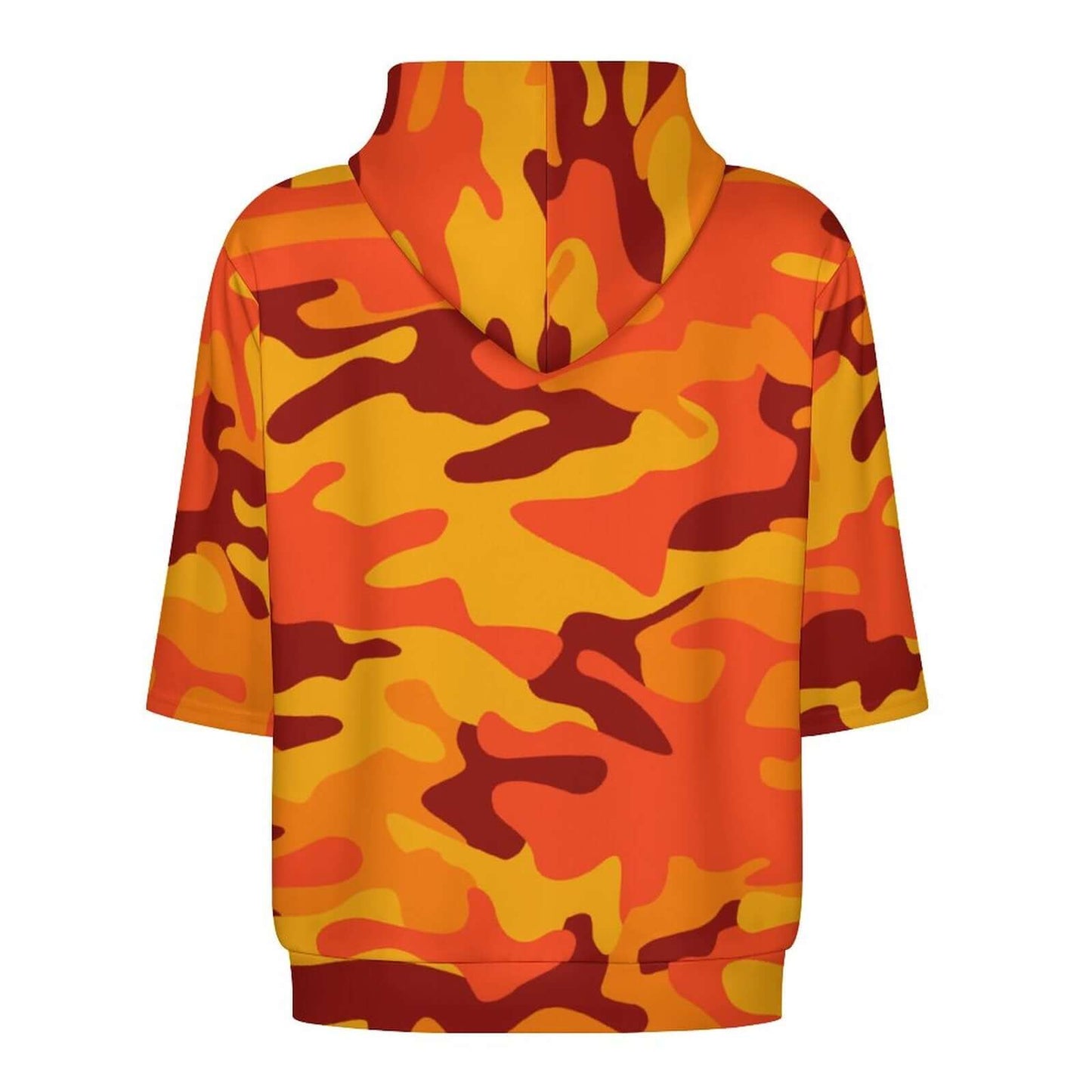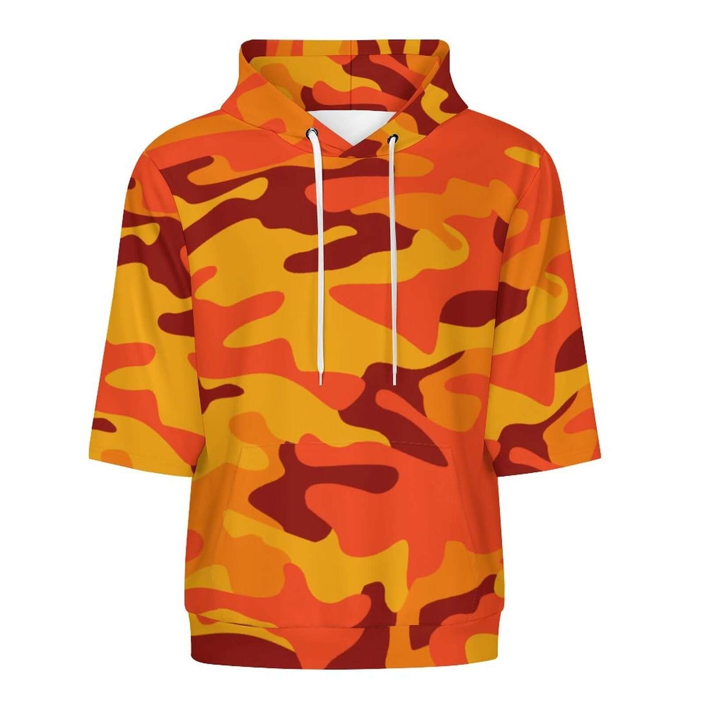 Short Sleeve Hoodie | Orange & Red Camouflage