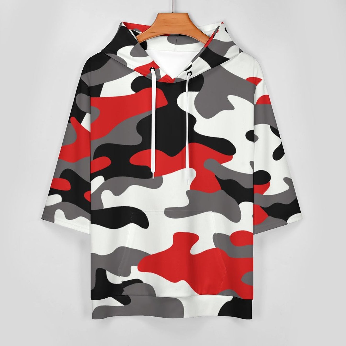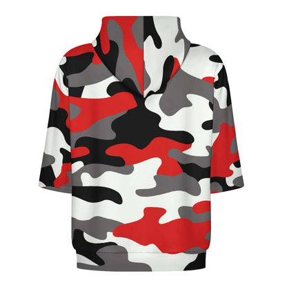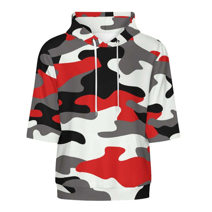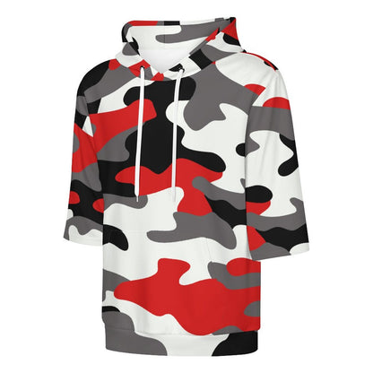 Short Sleeve Hoodie | Red, Black, and White Camouflage