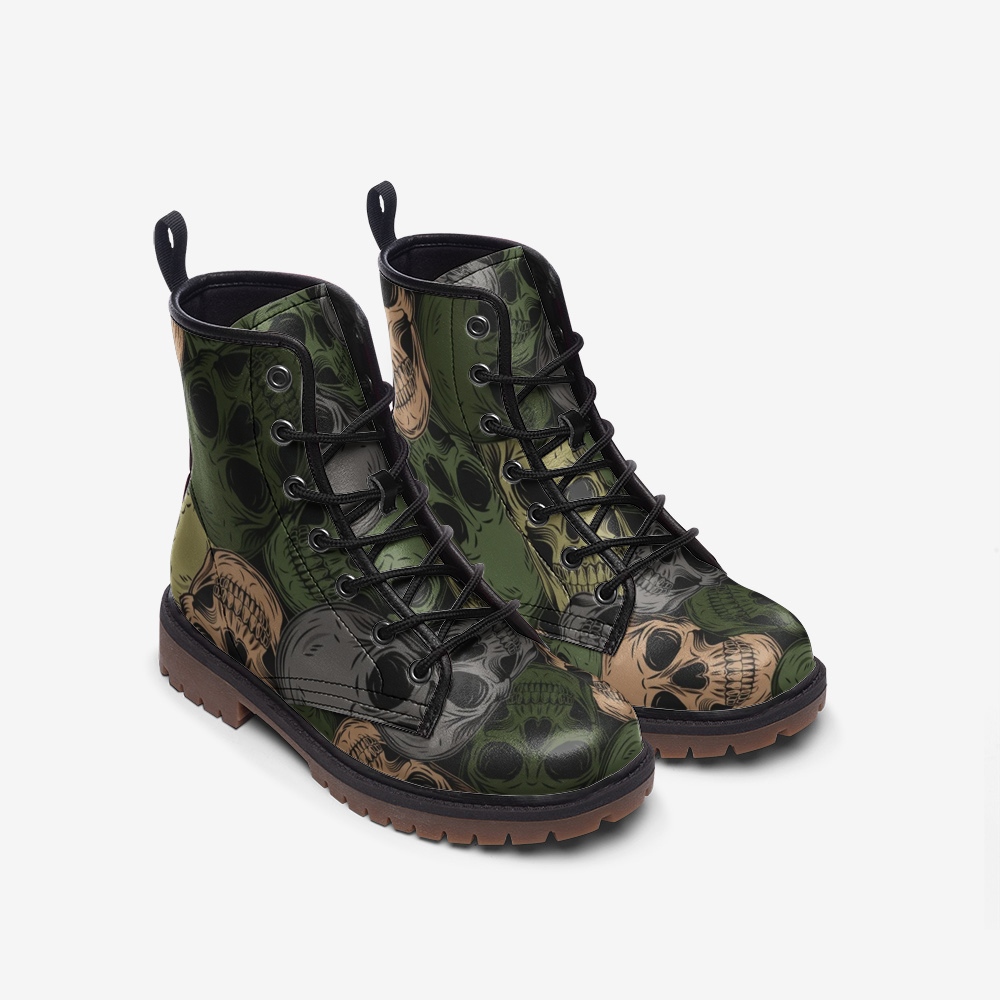 Skulls Camo Boots | Lightweight Leather | Green and Gray