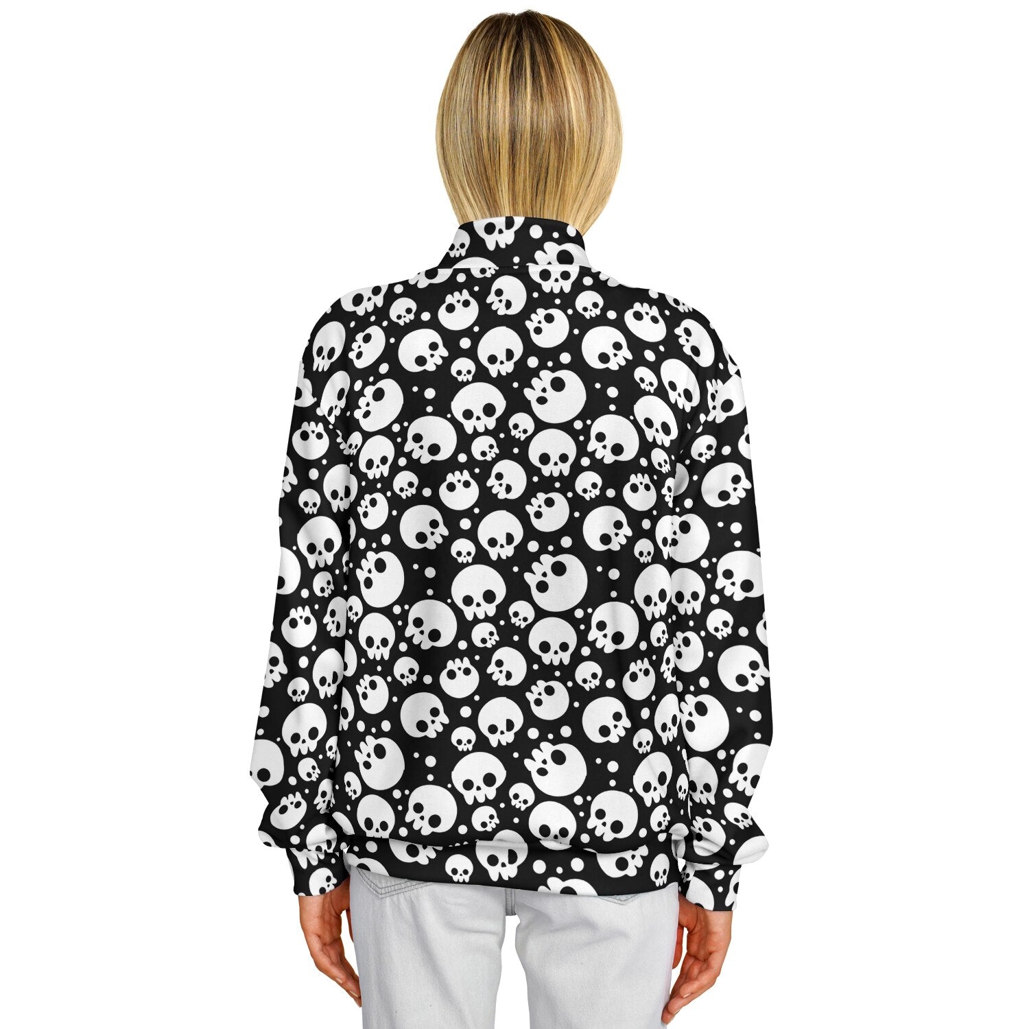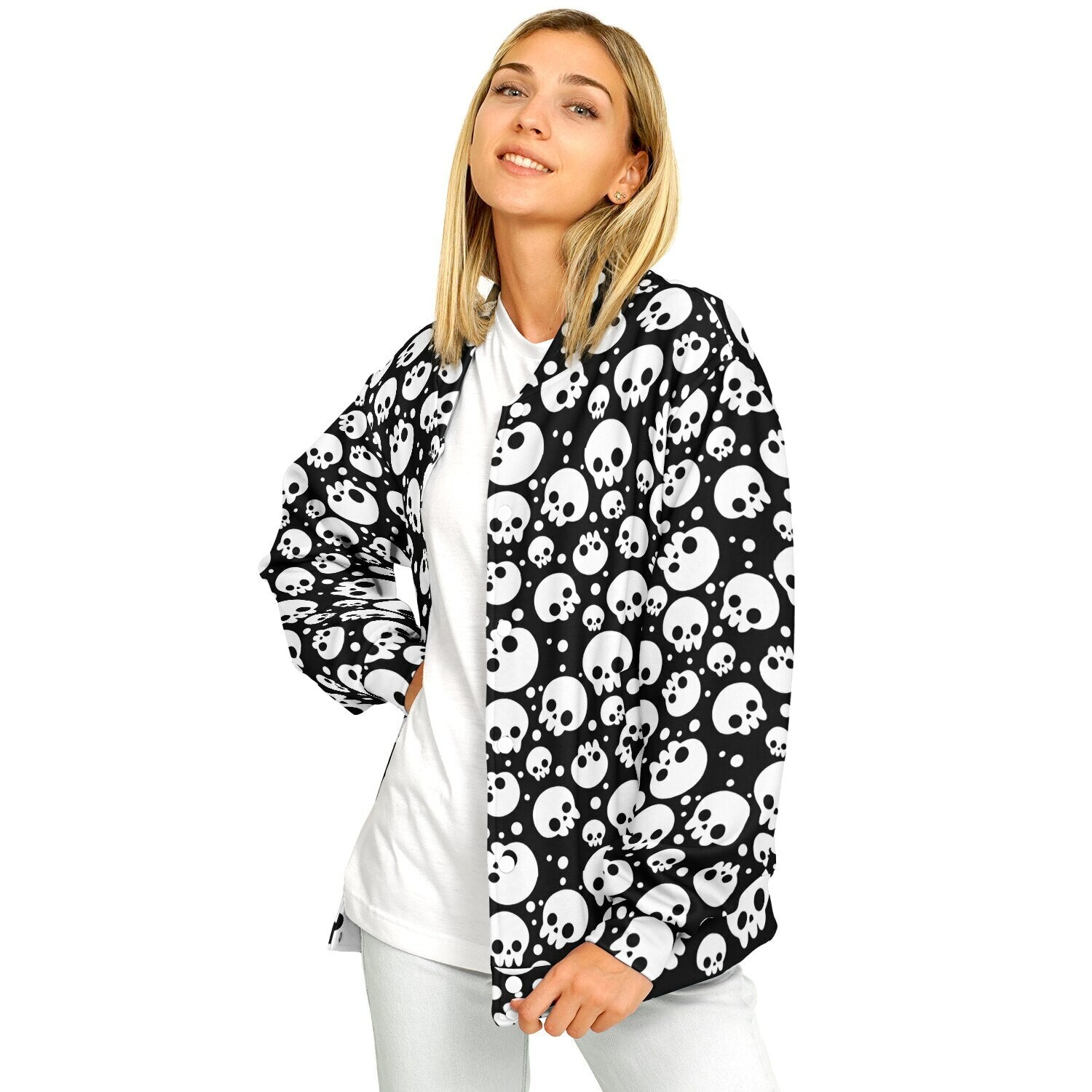 The Skulls Jacket in Black and White is a bold, heavyweight baseball coat that combines striking contrast with rebellious style. Featuring a bold black and white skull design, this jacket makes a statement with its edgy, modern aesthetic. Crafted from a durable polyester and spandex blend, it offers warmth and comfort, perfect for cooler weather. The snap button closures and ribbed cuffs ensure a secure, classic fit, while the eye-catching skull graphics add an unexpected twist to your wardrobe. Whether you're layering up for a casual day or looking to add some attitude to your outfit, this jacket combines bold design with practical functionality.