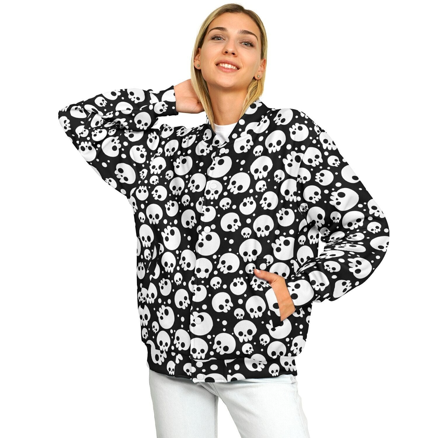 Skulls Jacket in Black and White | Heavyweight Baseball Coat