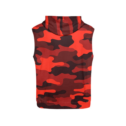 Sleeveless Camo Hoodie For Women | Scarlet Red and Black