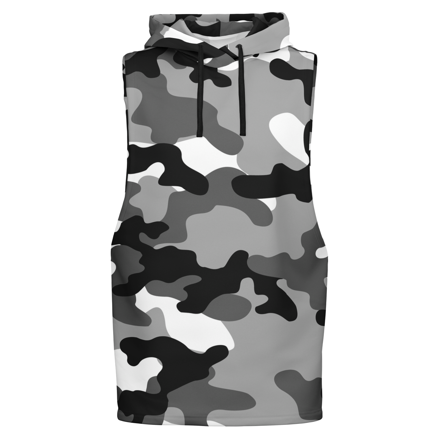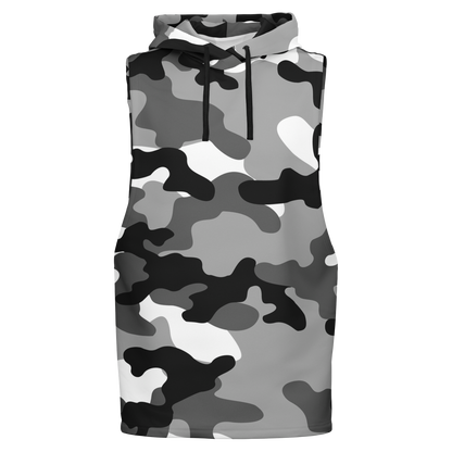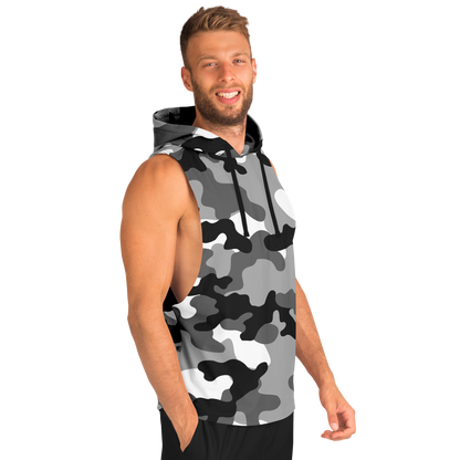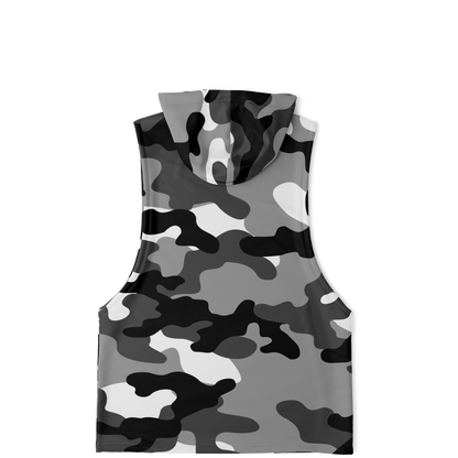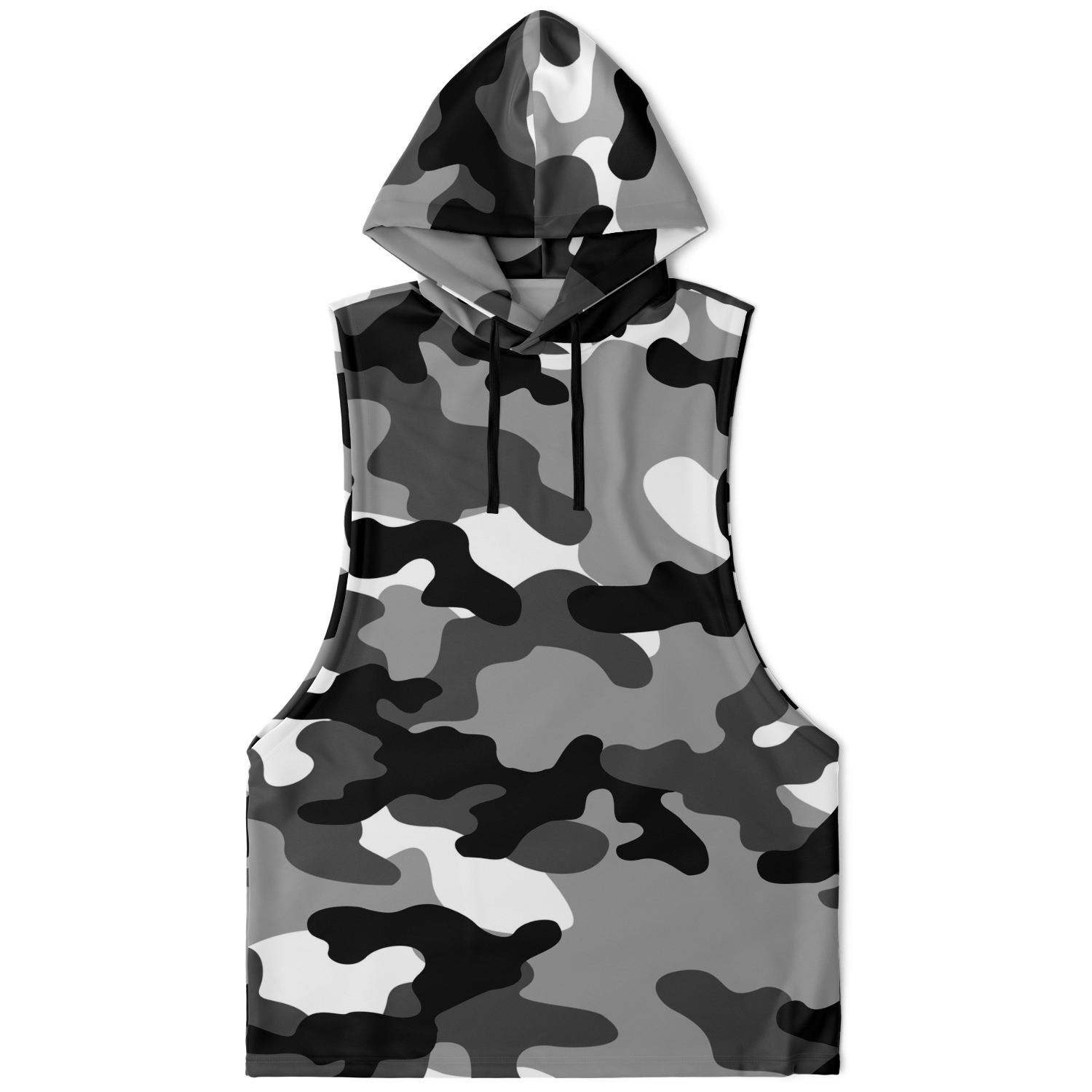 Sleeveless Hoodie | Black, White & Gray Camouflage