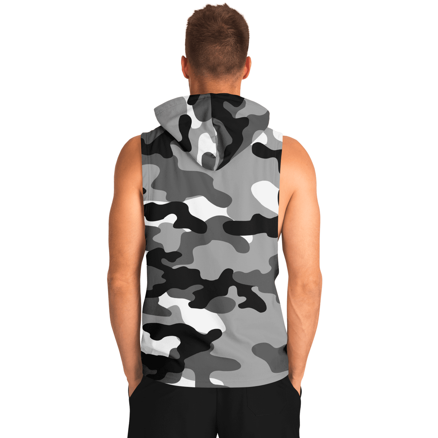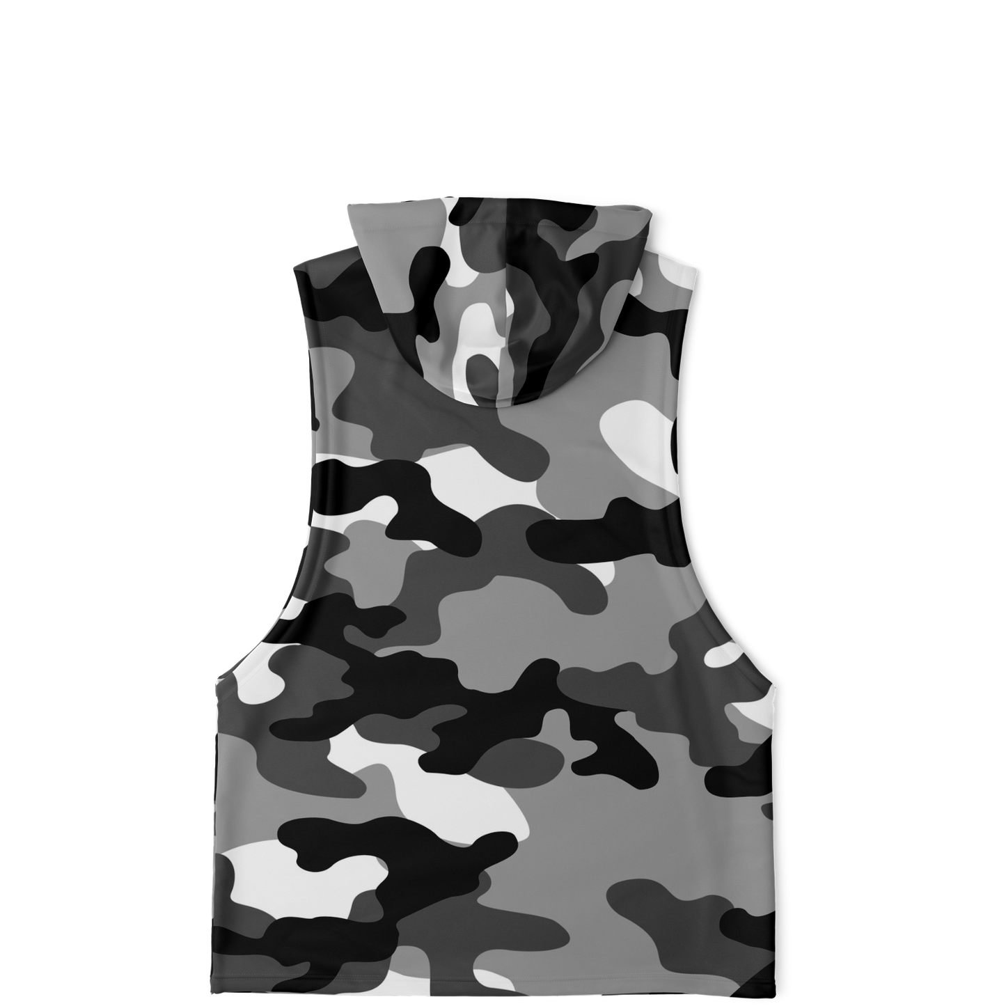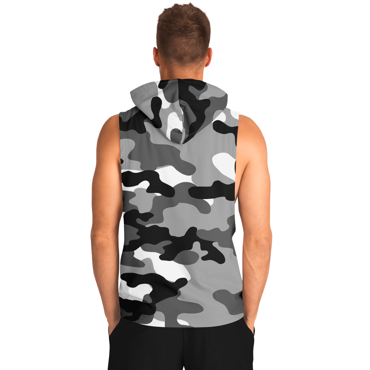 Sleeveless Hoodie | Black, White & Gray Camouflage