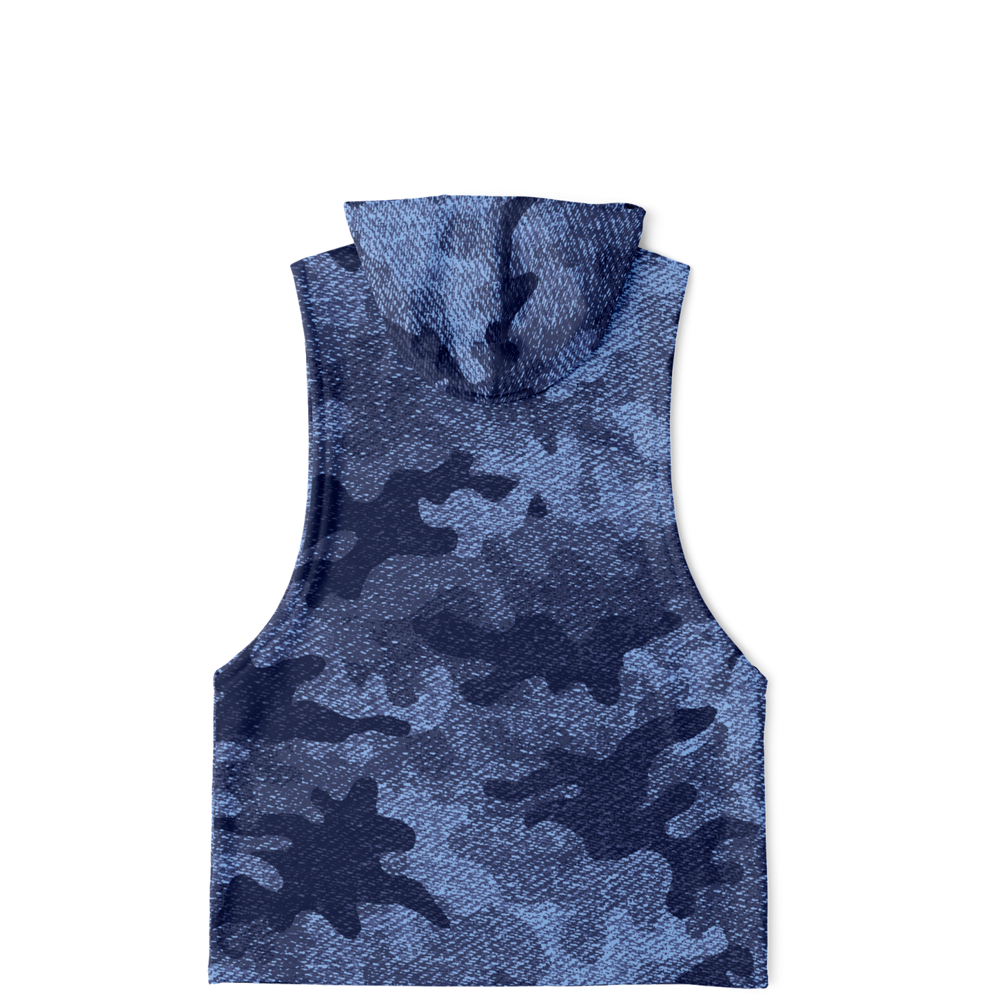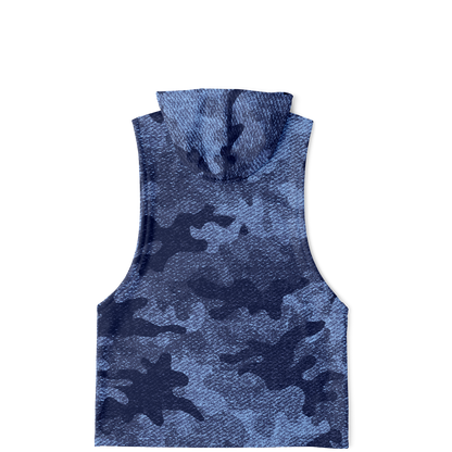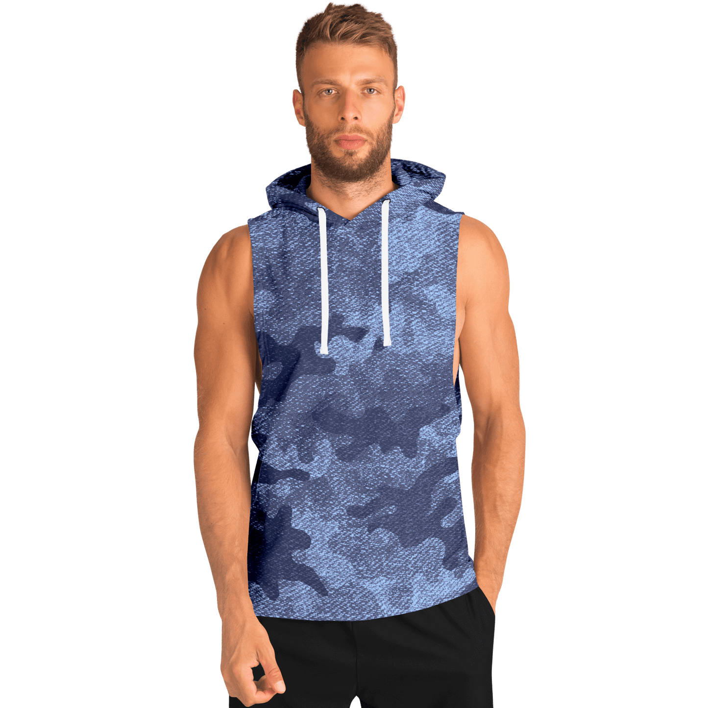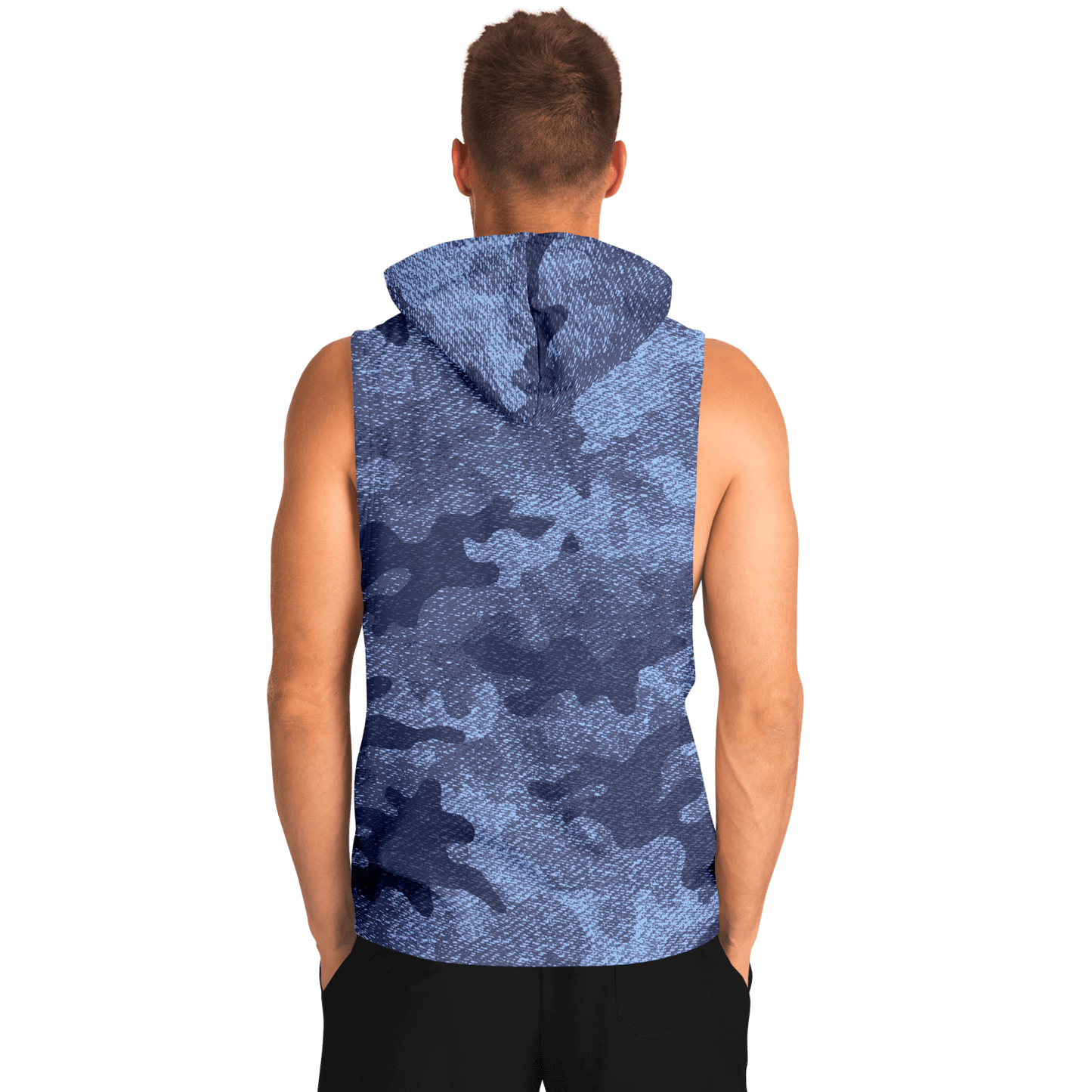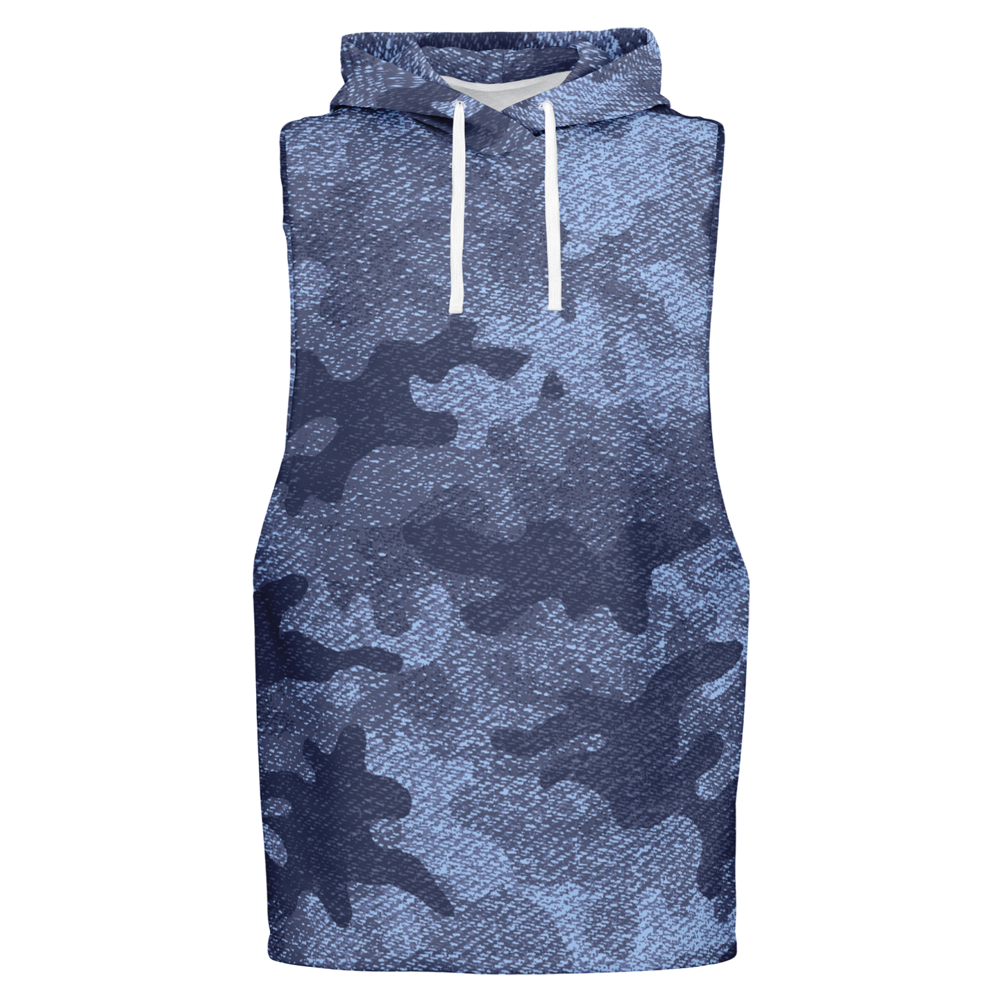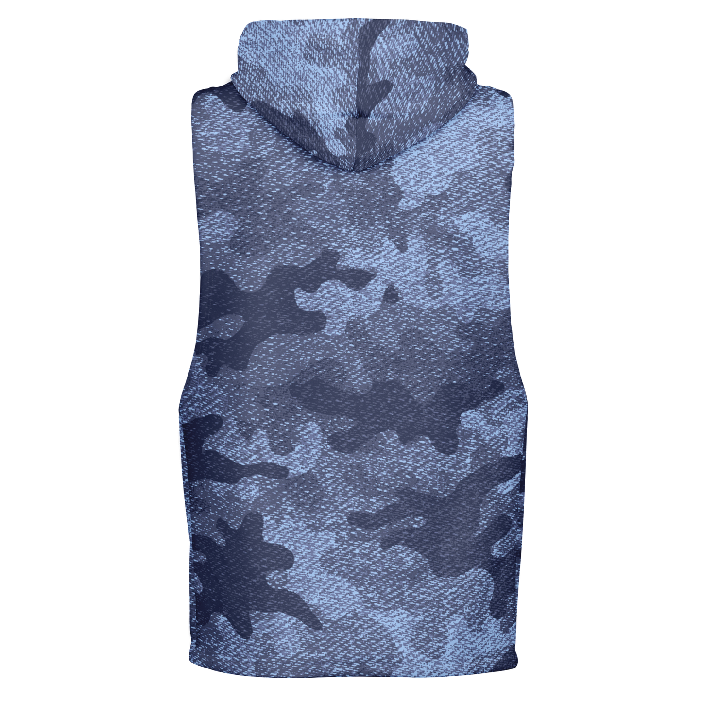 This Sleeveless Hoodie in Blue Denim Camouflage is perfect for those looking for a stylish and functional garment. Made with high-quality materials, it offers both comfort and durability. With its unique design, this hoodie is sure to make a statement while keeping you cool during warmer weather.