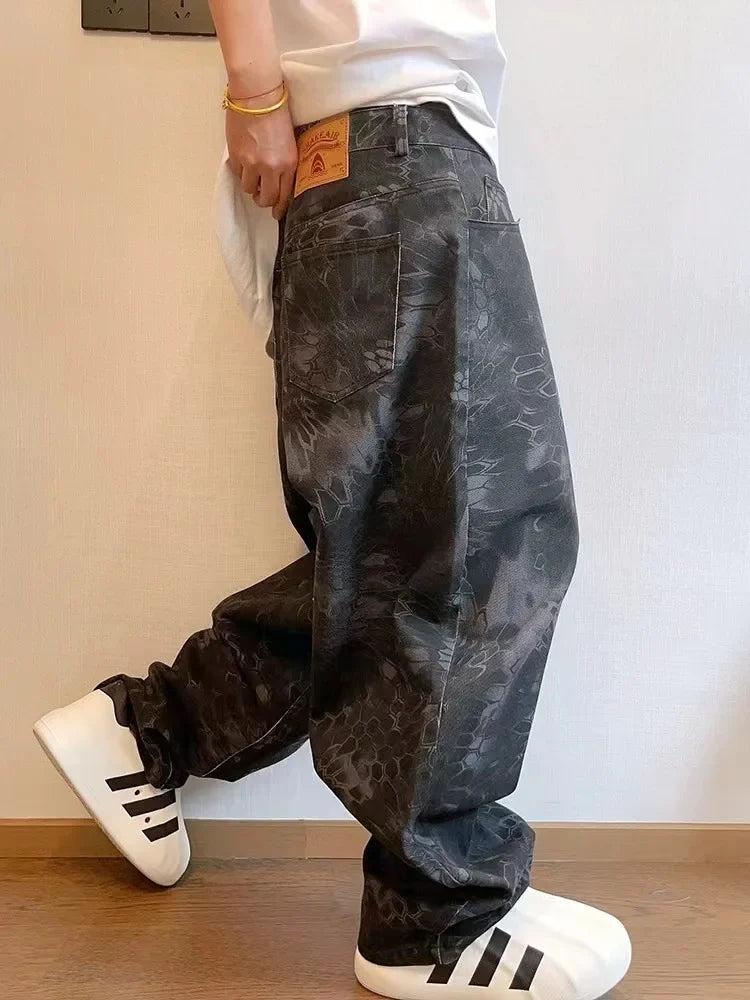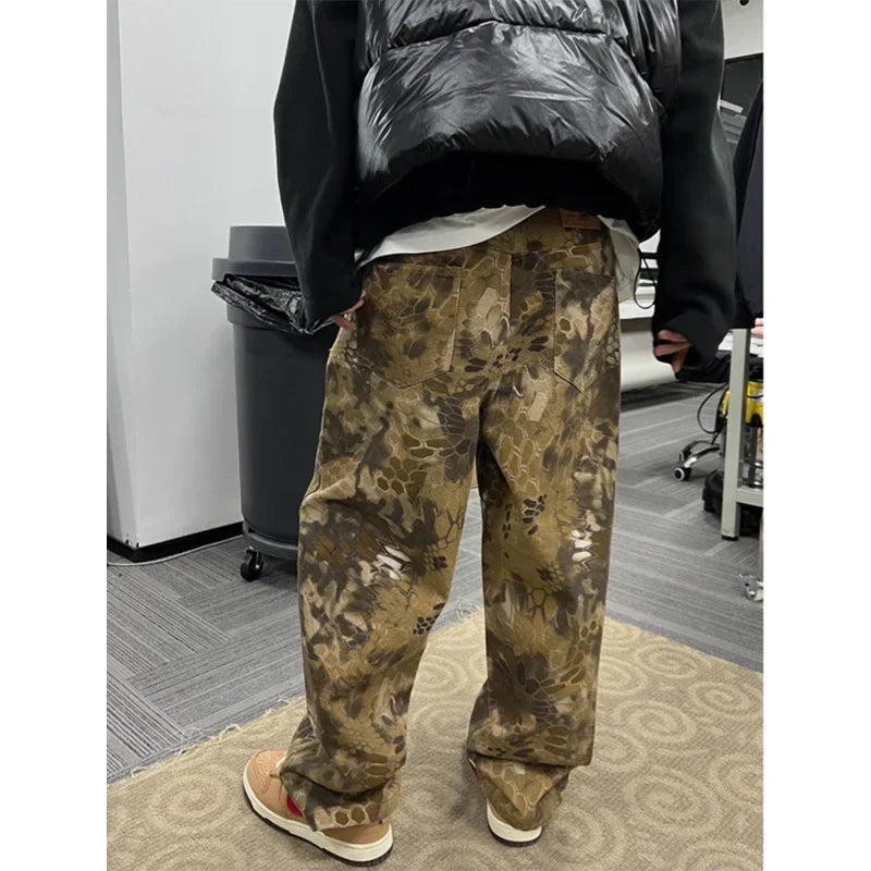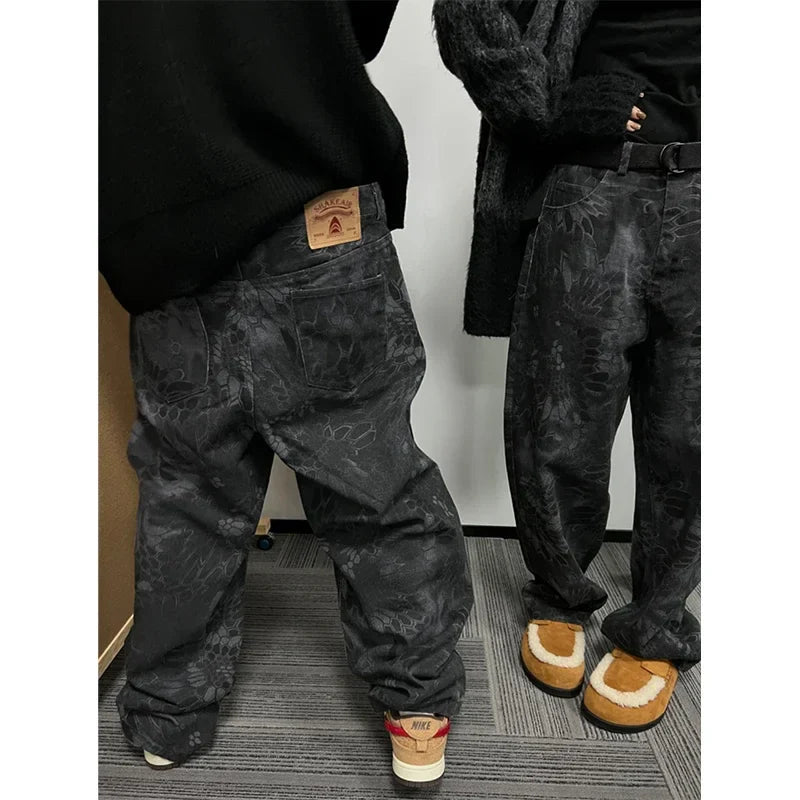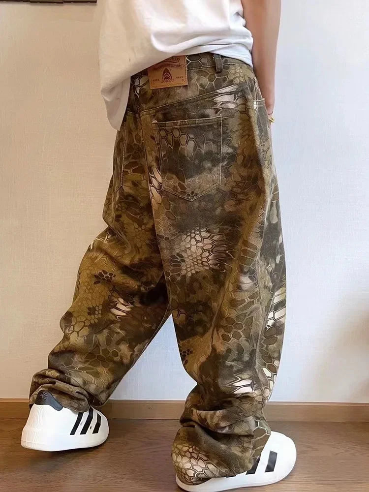Snake Print Camouflage Wide-Leg Jeans – Bold Streetwear
