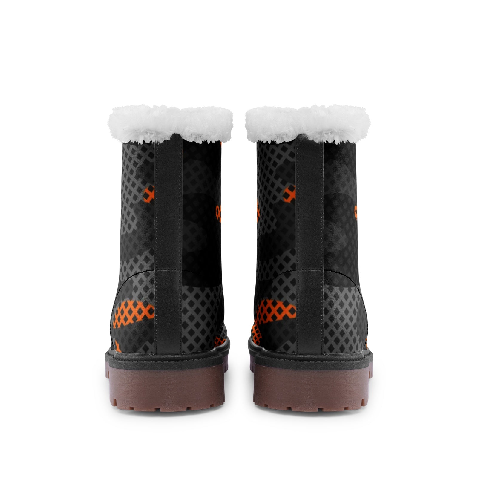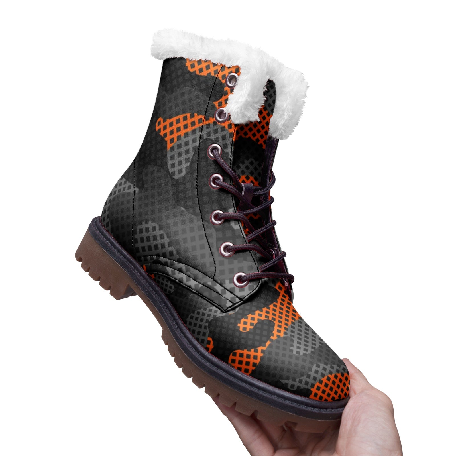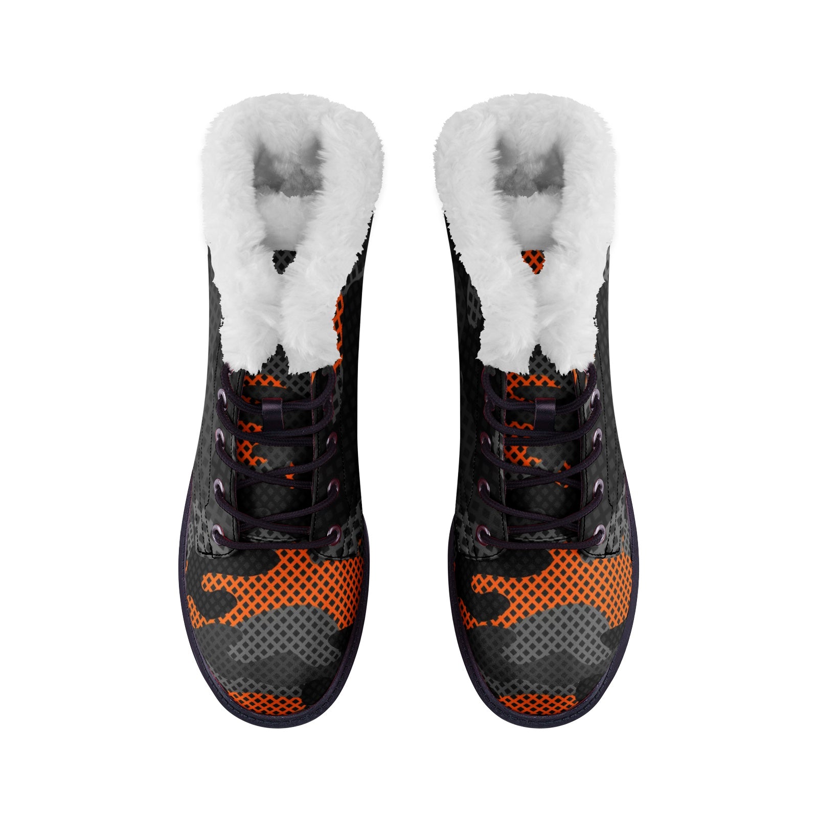 Snow Camo Boots | Black & Orange Pixel Camouflage