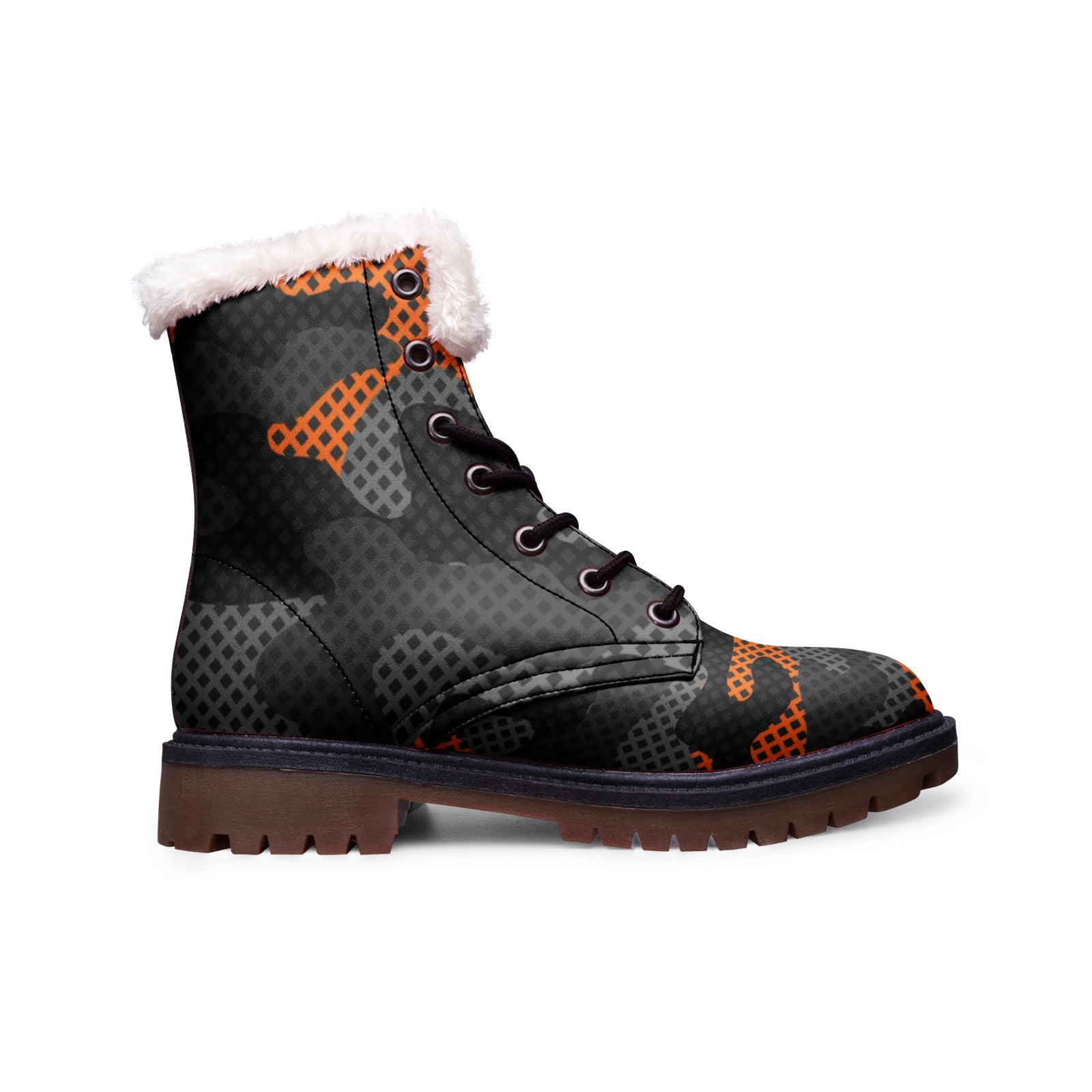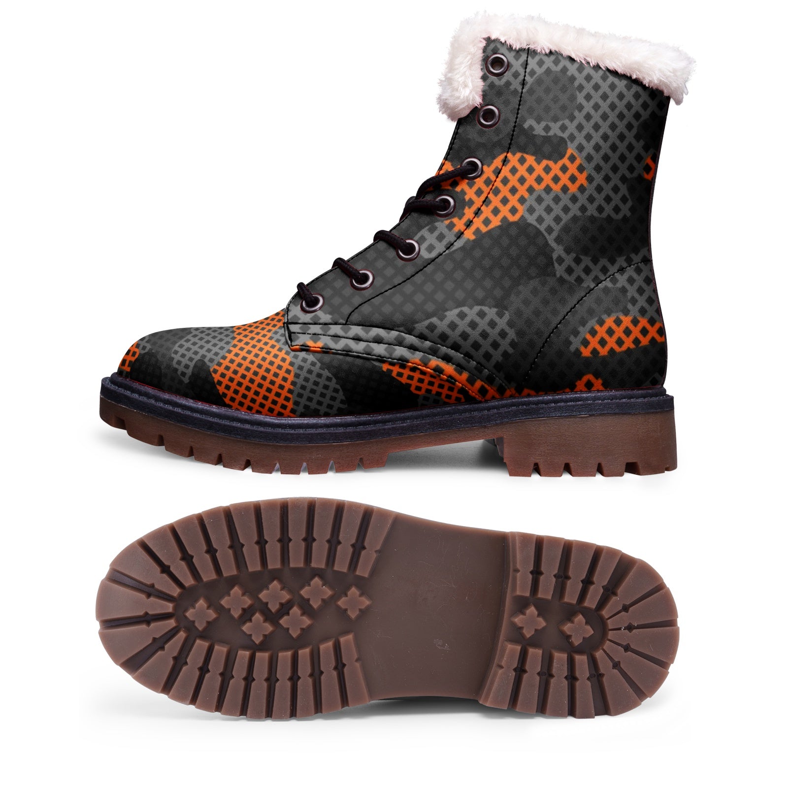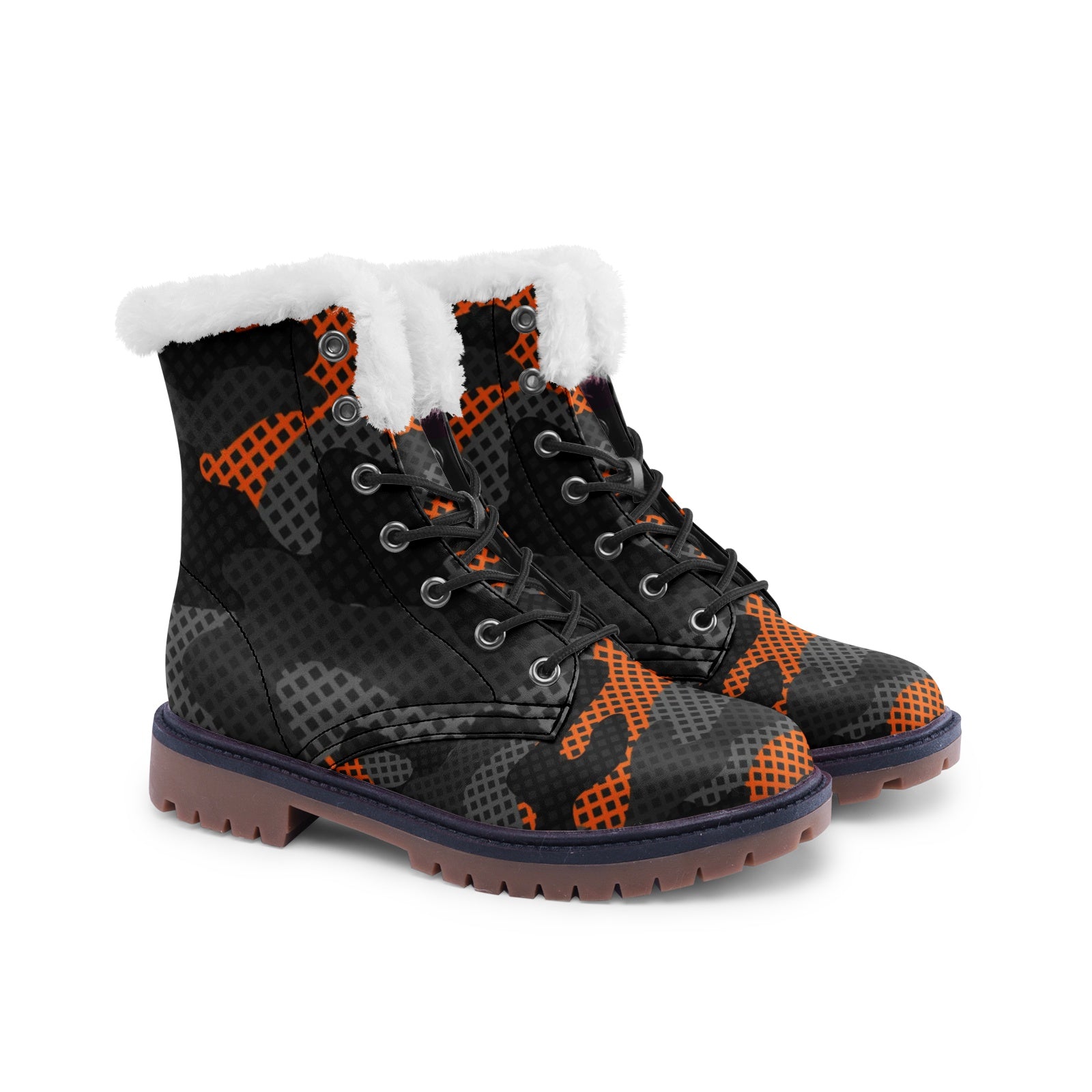 Snow Camo Boots | Black & Orange Pixel Camouflage