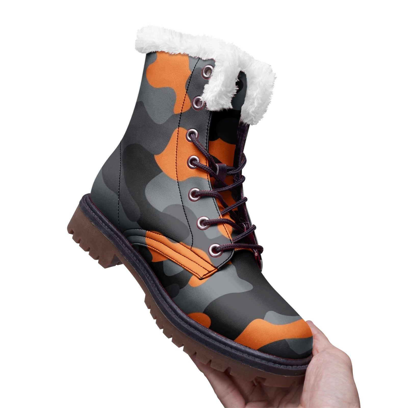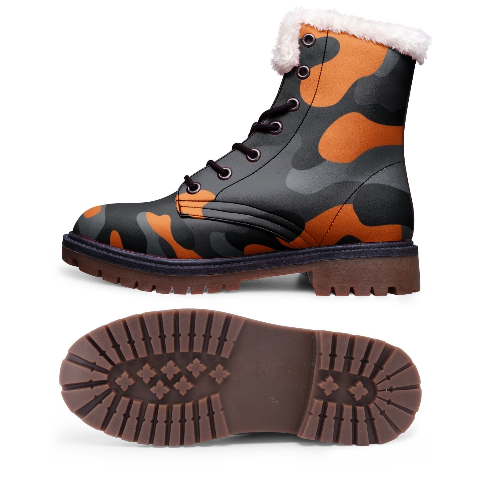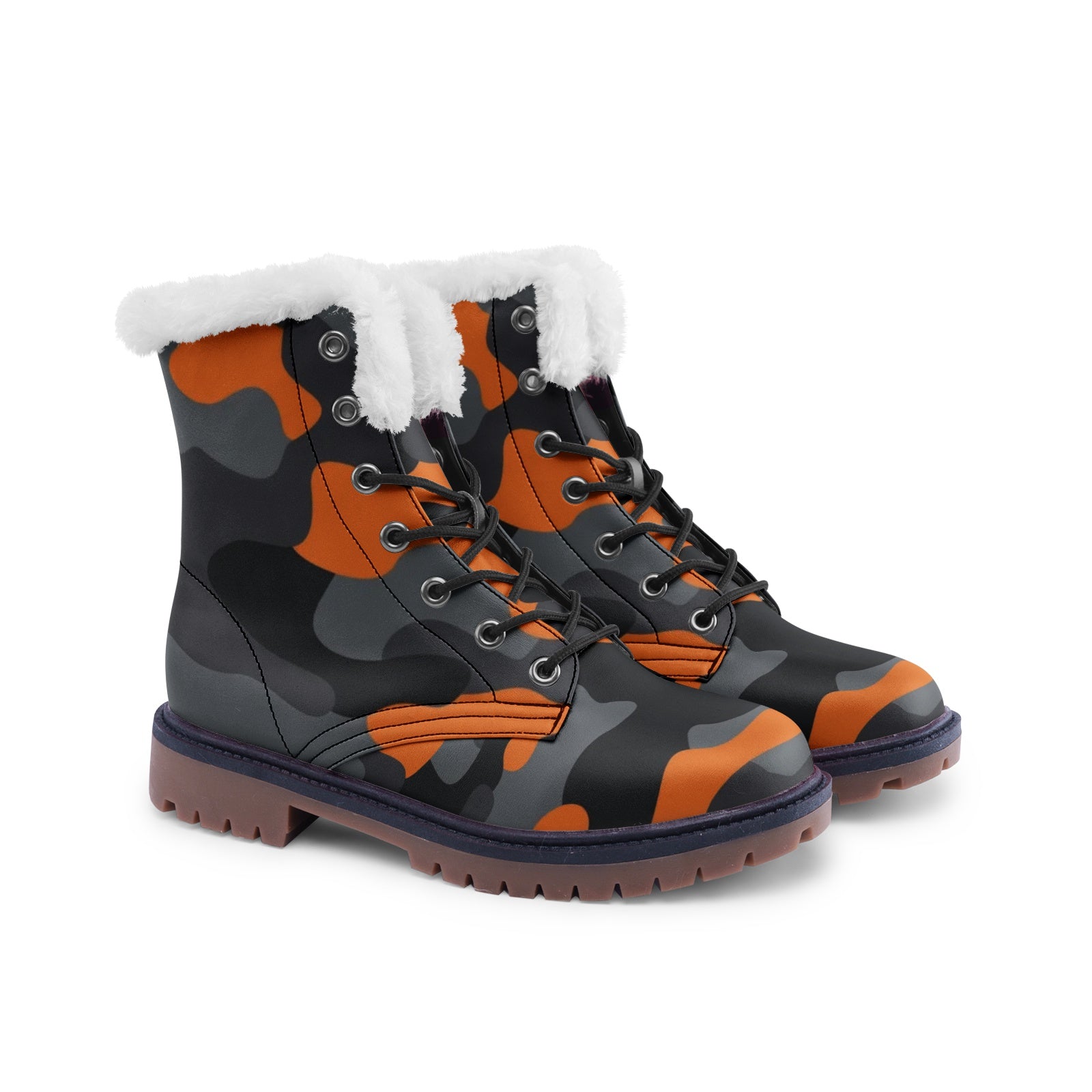 Snow Camo Boots | Orange, Black, and Gray Camouflage
